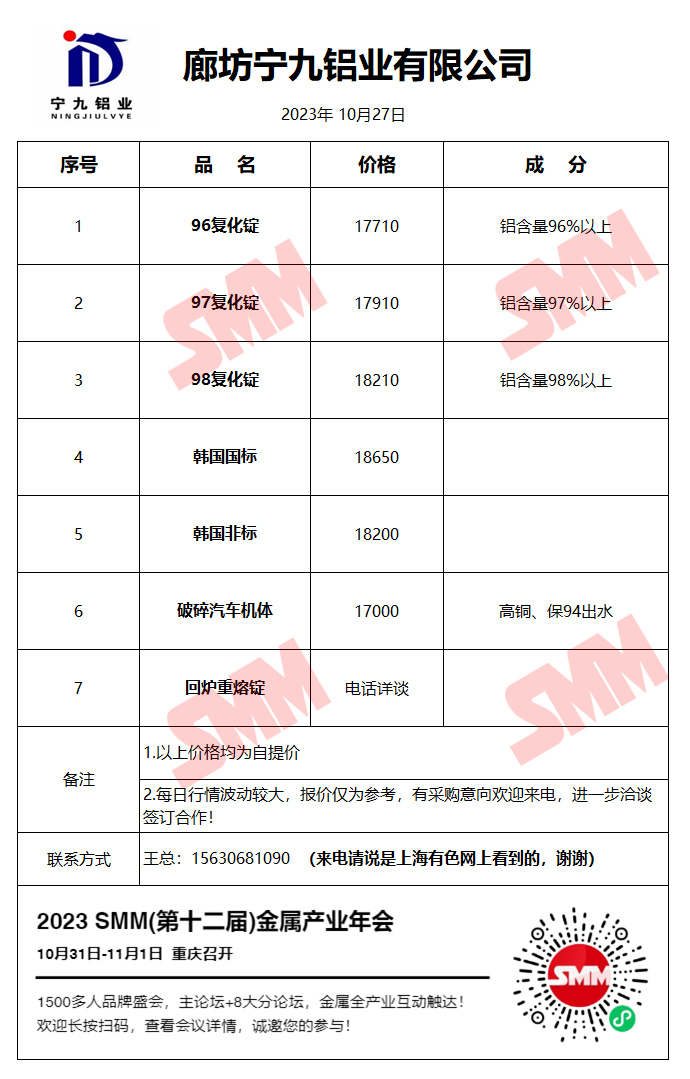 今日宁九铝业 废铝销售报价已更新,有采购意向的朋友欢迎联系我们!