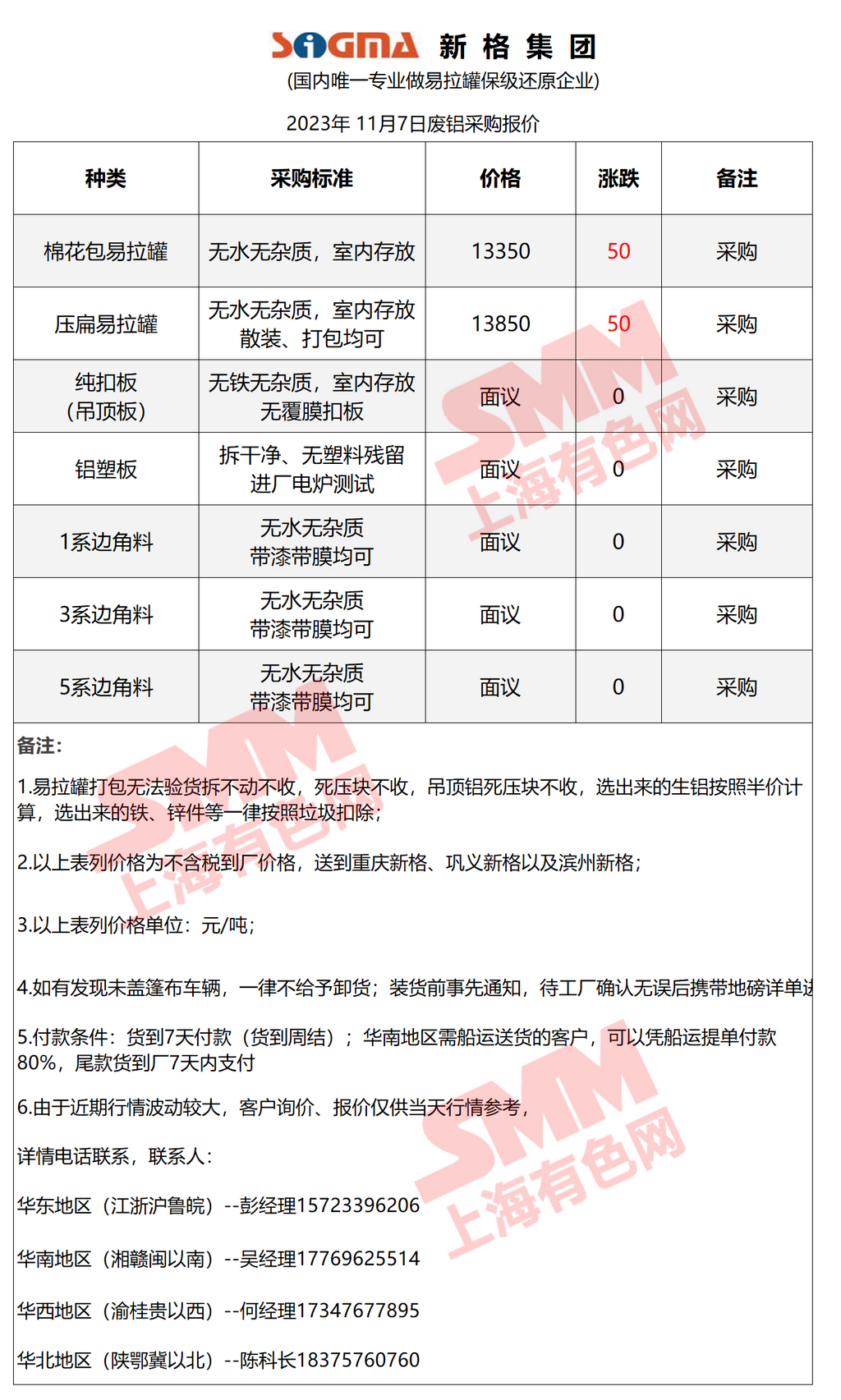 今日新格集团 废铝采购报价已更新,有货的朋友欢迎联系我们!
