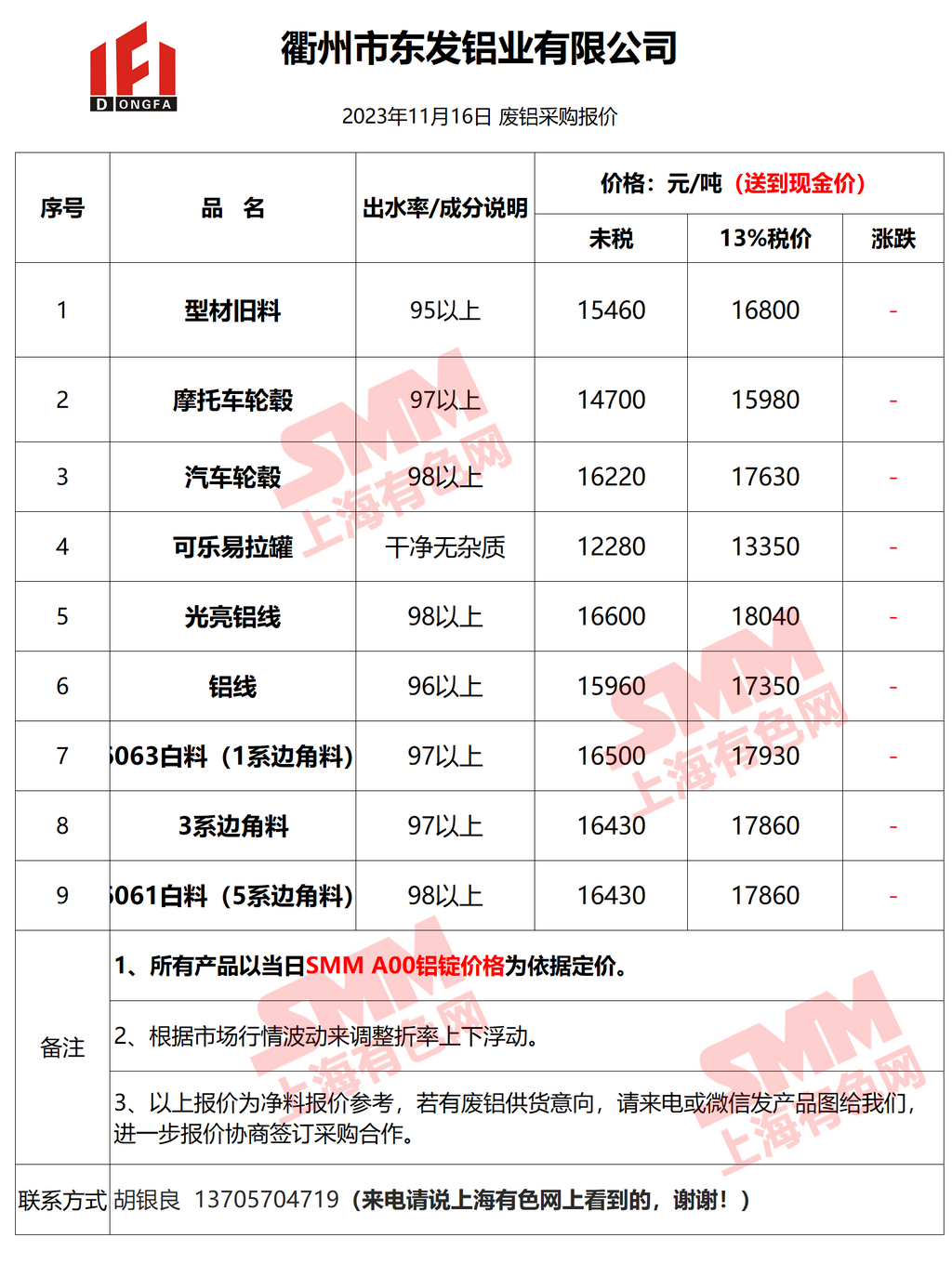 今日衢州东发 废铝采购报价已更新,有货的朋友欢迎联系我们!