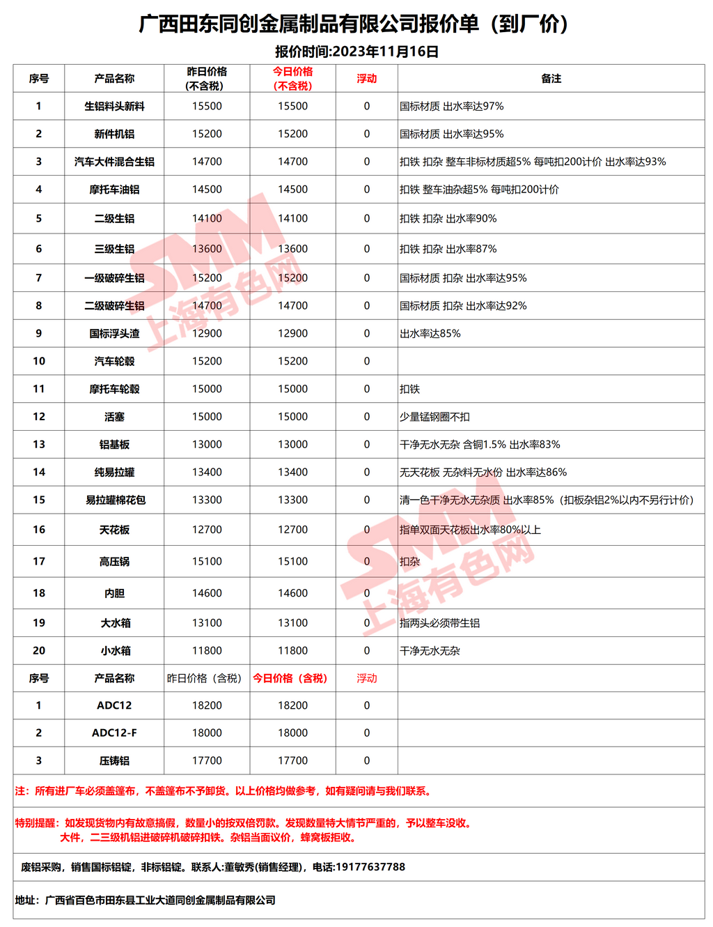 今日广西田东同创金属制品有限公司 废铝采购报价已更新,有货的朋友欢迎联系我们!