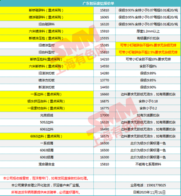 11月16日广东智辰 废铝收购报价