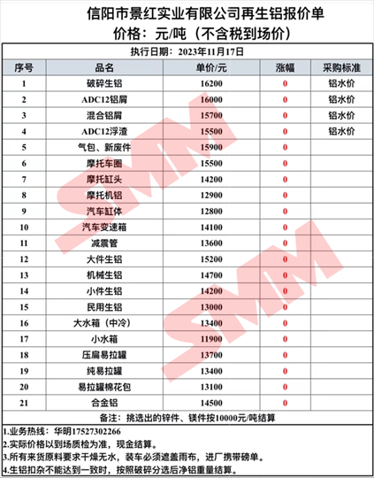 今日河南信阳景红铝业 废铝采购报价已更新,有货的朋友欢迎联系我们!