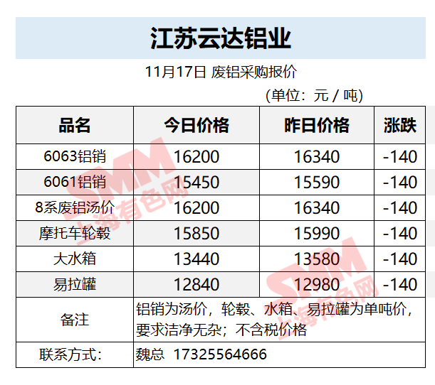 今日江苏云达铝业 废铝采购报价已更新,有货的朋友欢迎联系我们!