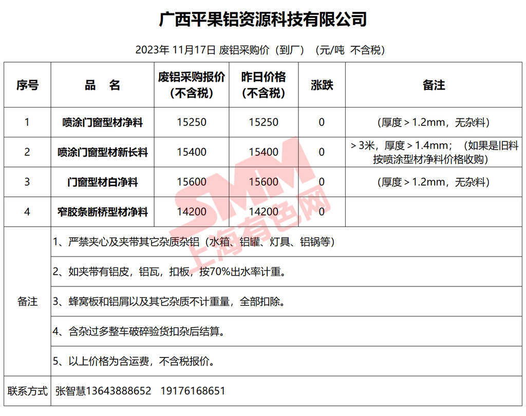 11月17日广西平果 废铝采购报价