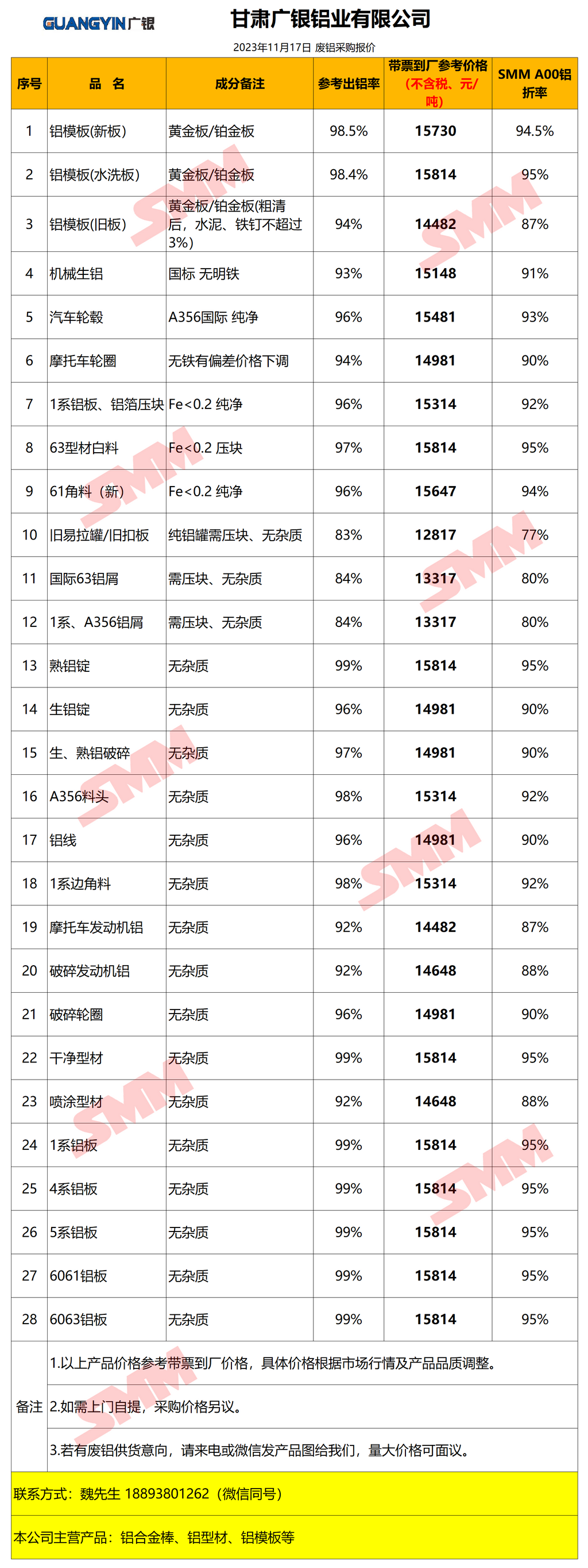 11月17日甘肃广银铝业 废铝采购报价