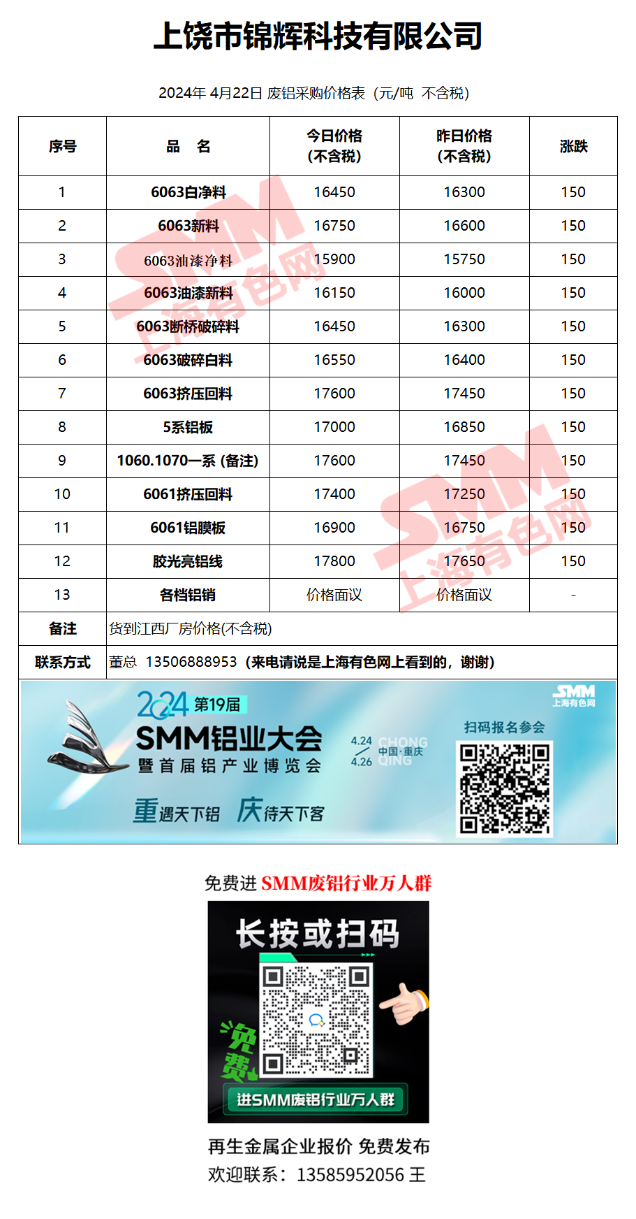 今日上饶锦辉 废铝采购报价已更新,有货的朋友欢迎联系我们!
