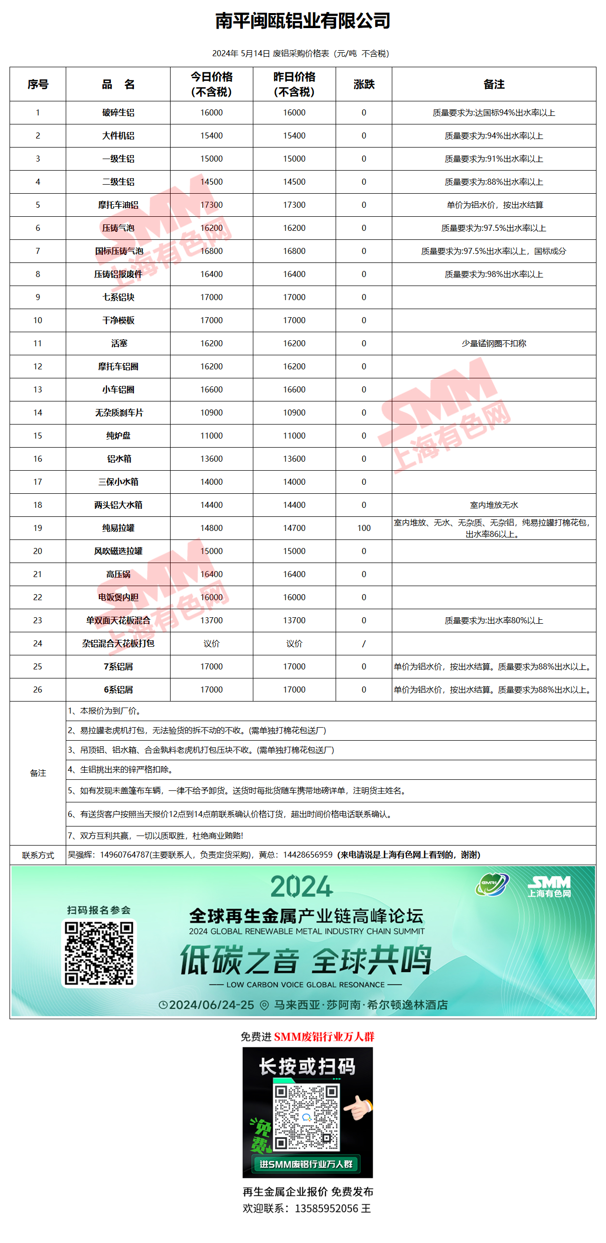 今日南平闽瓯 废铝采购报价已更新,有货的朋友欢迎联系我们!