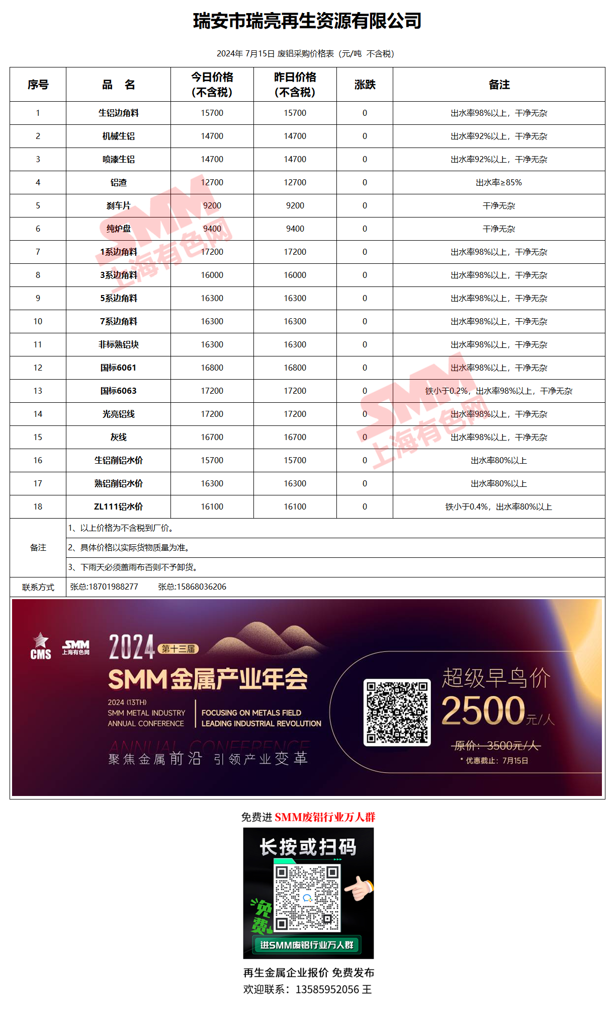 今日瑞亮再生 废铝采购报价已更新,有货的朋友欢迎联系我们!