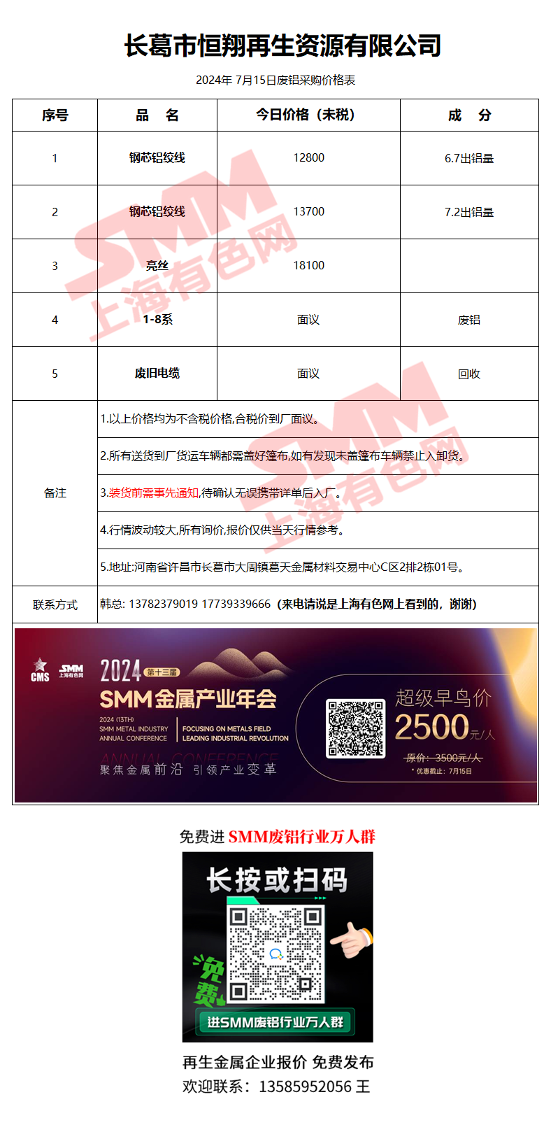 7月15日长葛恒翔 废铝采购报价