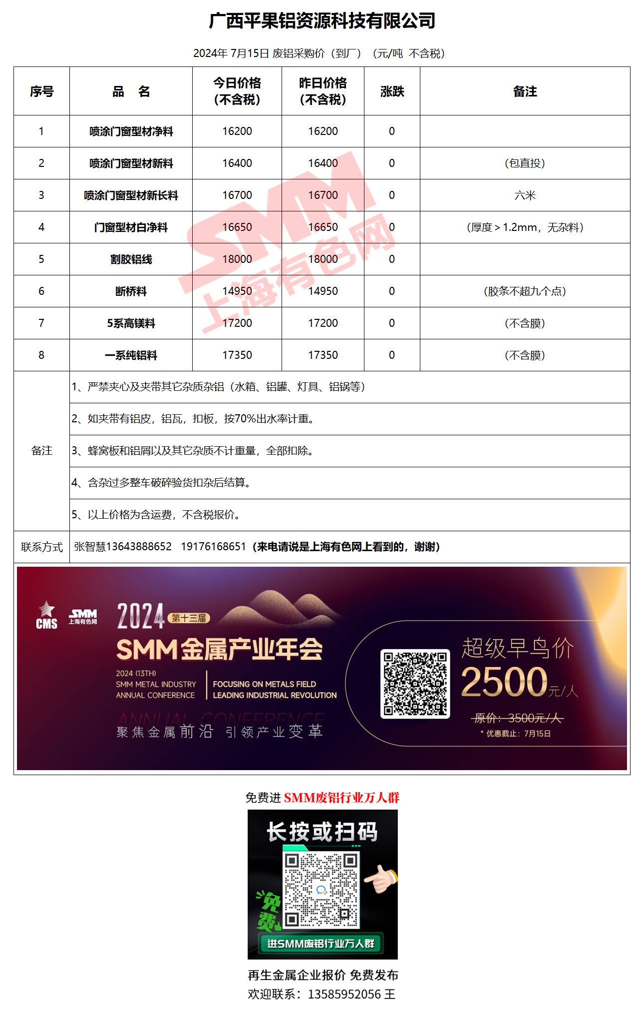7月15日广西平果 废铝采购报价
