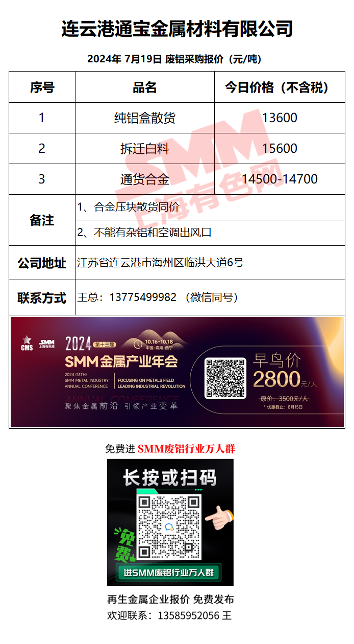 今日连云港通宝 废铝采购报价已更新,有货的朋友欢迎联系我们!