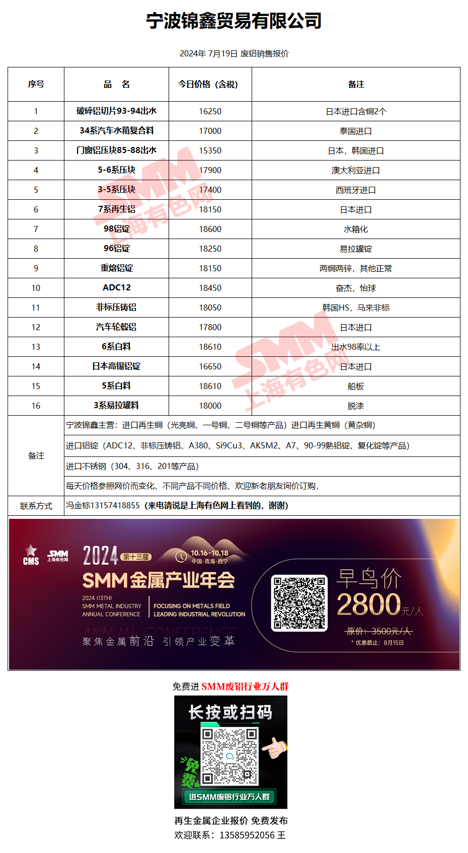 今日宁波锦鑫 废铝销售报价已更新,有货的朋友欢迎联系我们!