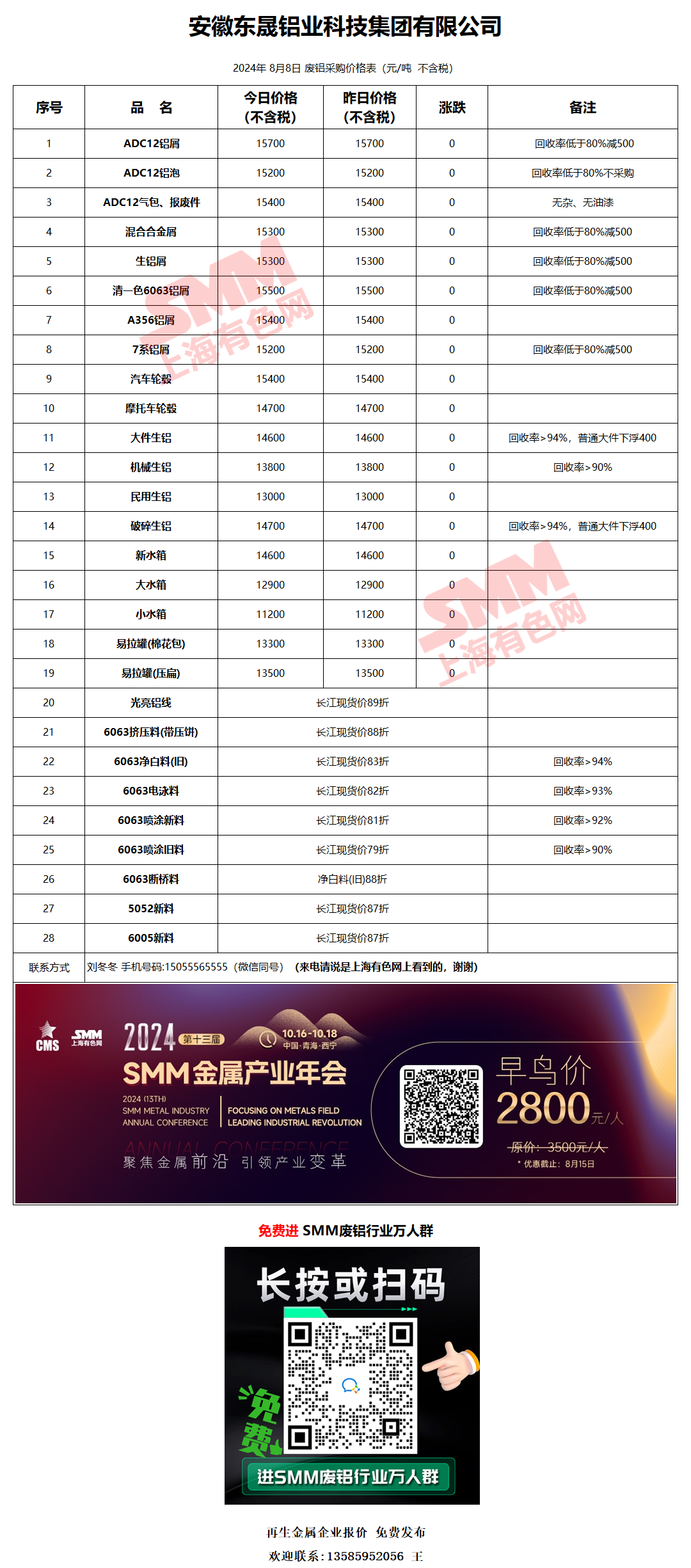 今日安徽东晟 废铝采购报价已更新,有货的朋友欢迎联系我们!