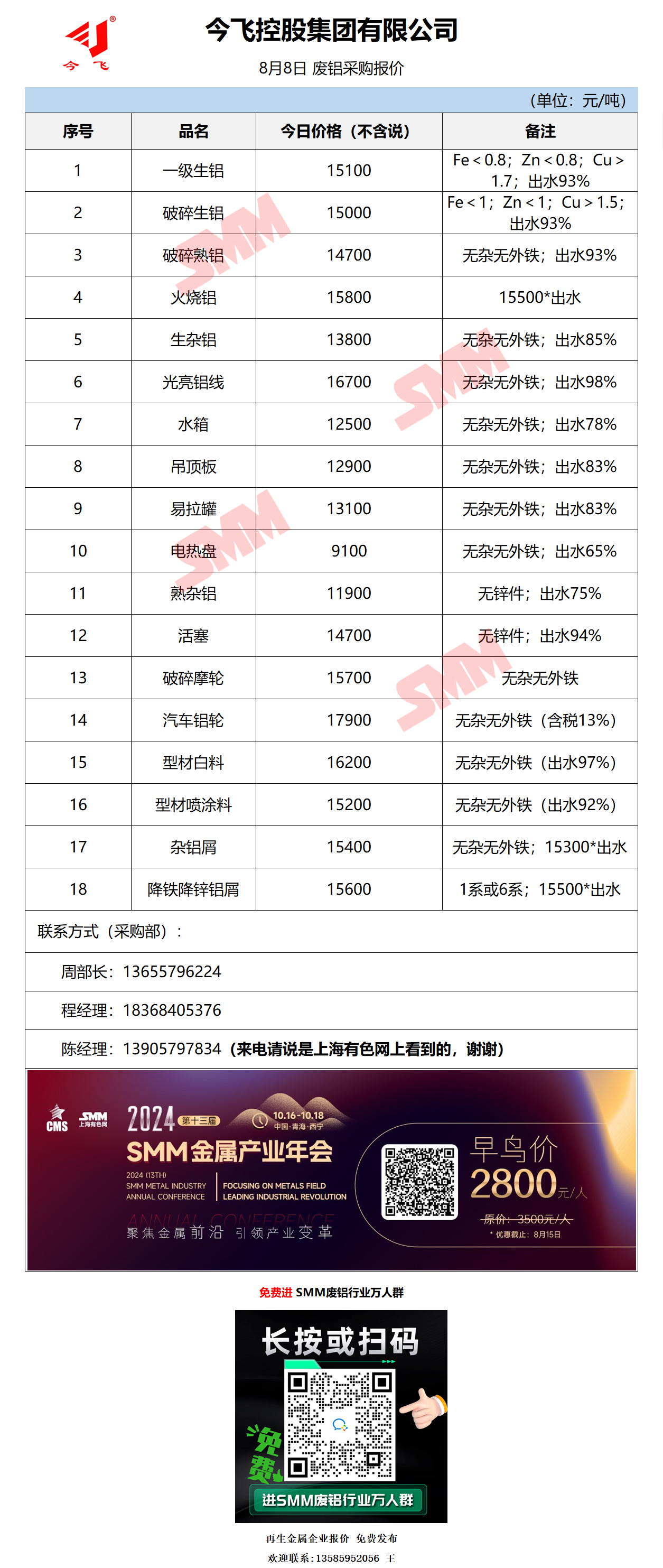 今日今飞集团 废铝采购报价已更新,有货的朋友欢迎联系我们!