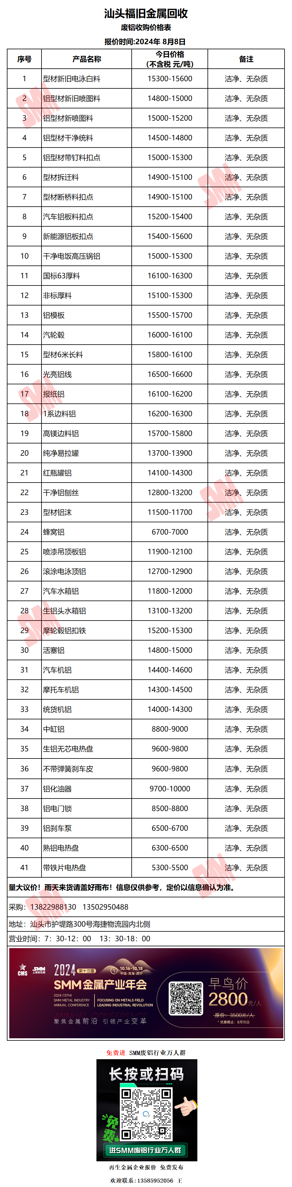 今日汕头福旧 废铝采购报价已更新,有货的朋友欢迎联系我们!