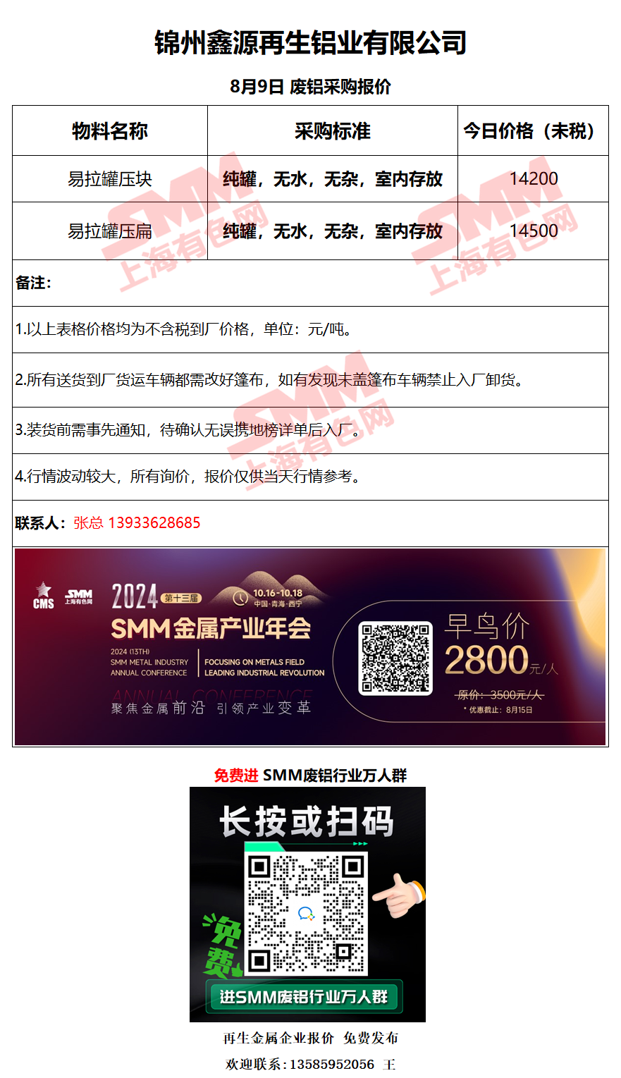 4月3日上海沪闽&福建沪鑫 废铝采购报价