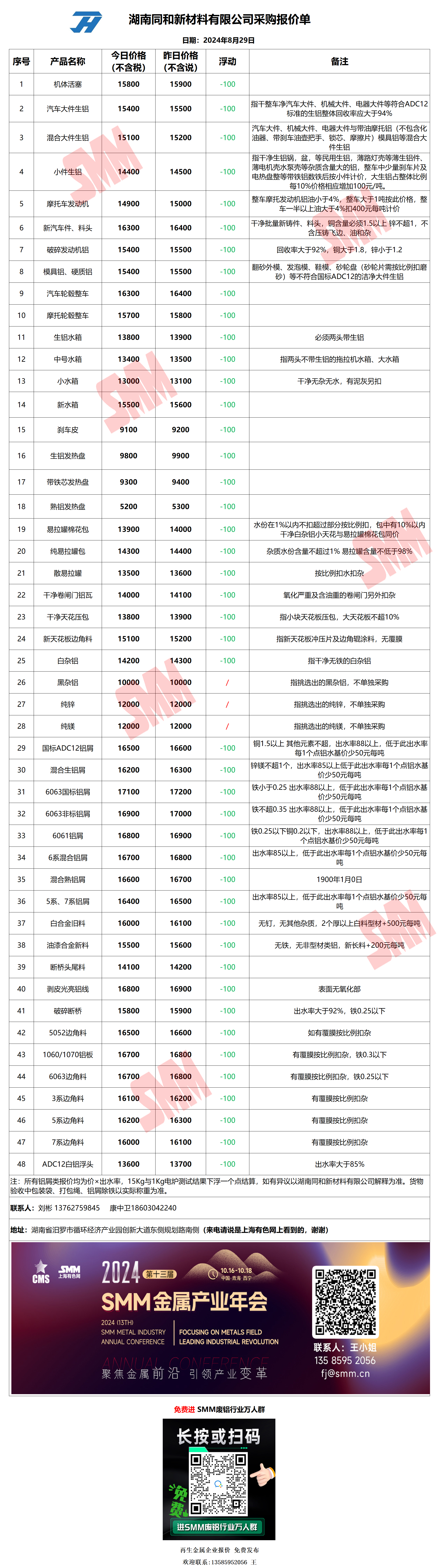 8月29日湖南同和 废铝采购报价