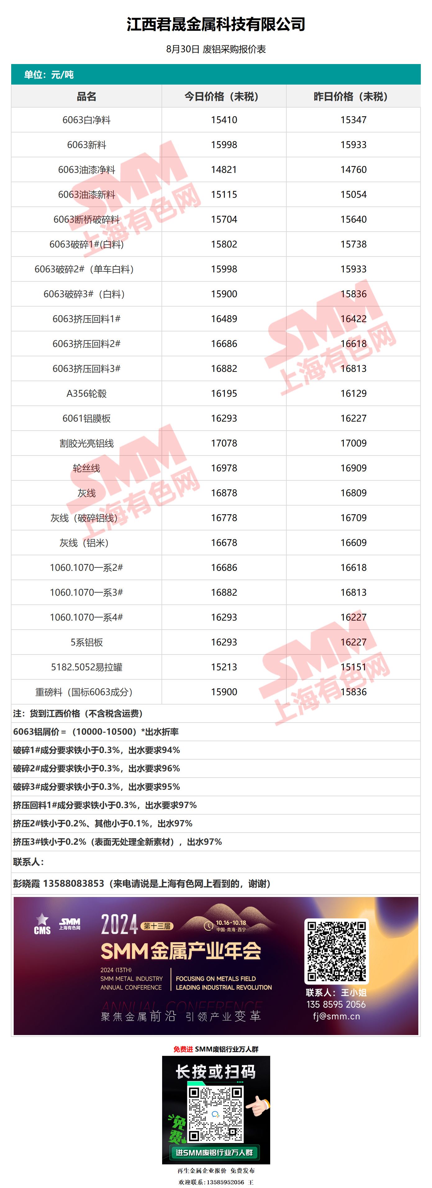 今日江西君晟金属 废铝采购报价已更新,有货的朋友欢迎联系我们!