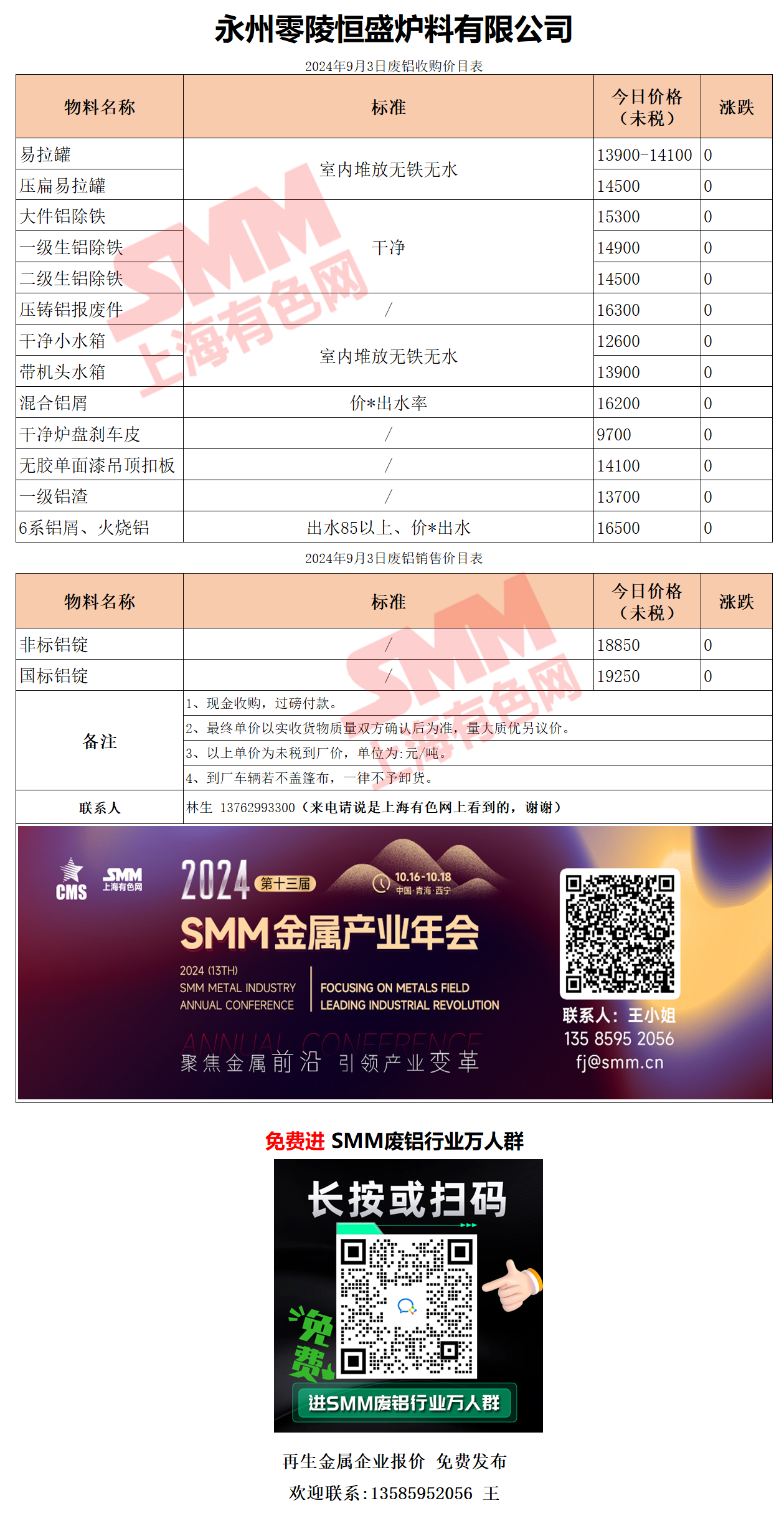 今日湖南恒盛 废铝采购报价已更新,有货的朋友欢迎联系我们!