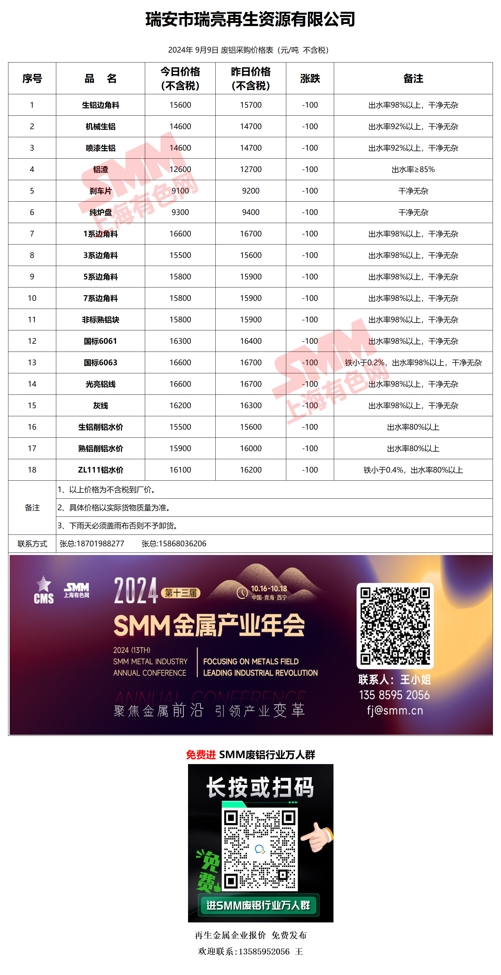 今日瑞亮再生 废铝采购报价已更新,有货的朋友欢迎联系我们!