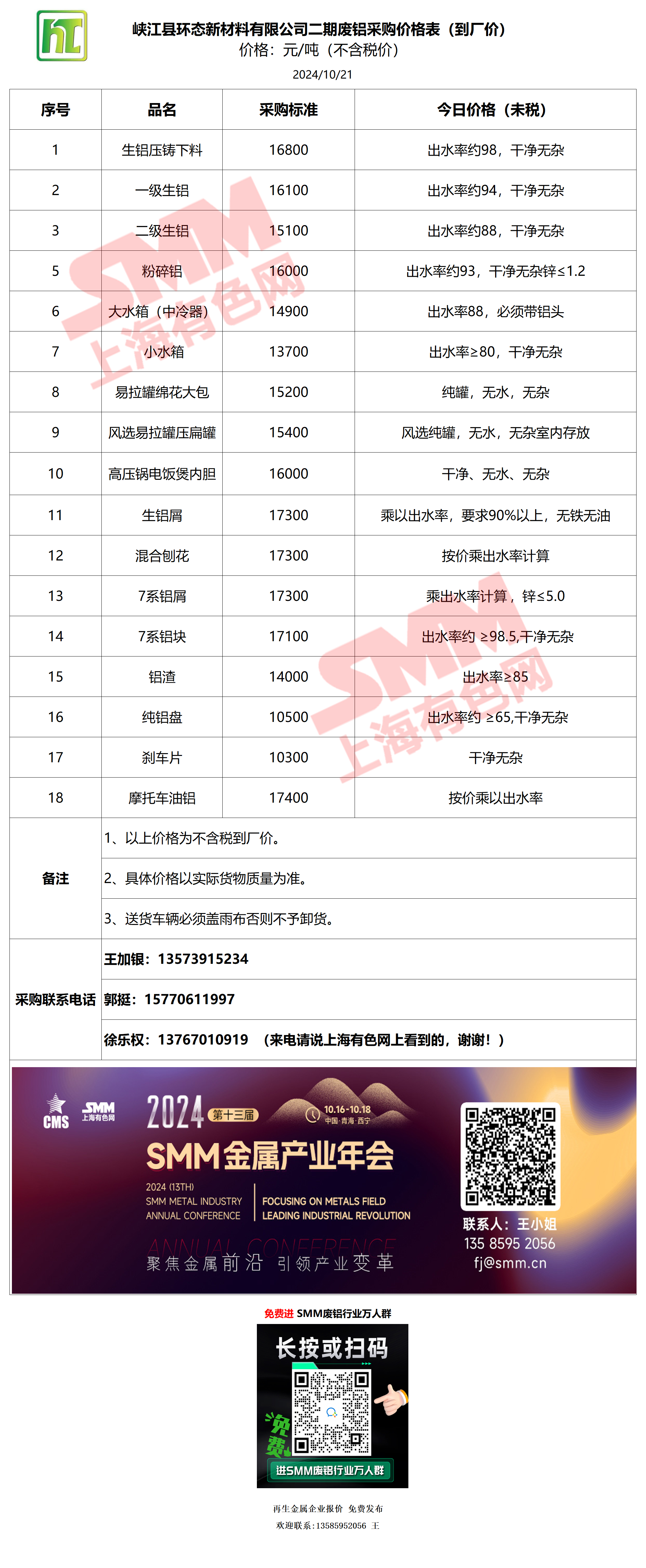 10月21日峡江环态 废铝采购报价