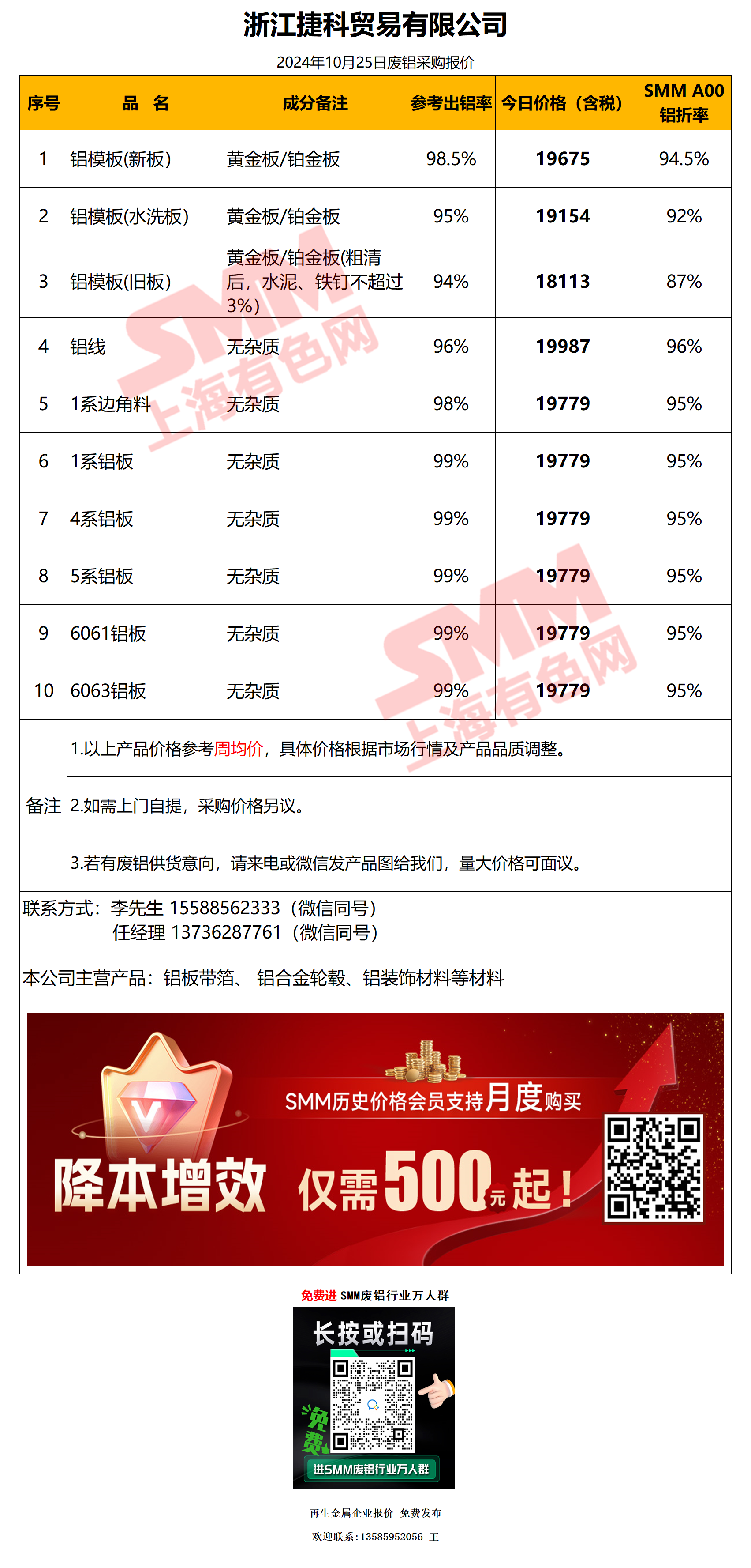 今日捷科贸易 废铝采购报价已更新,有货的朋友欢迎联系我们!