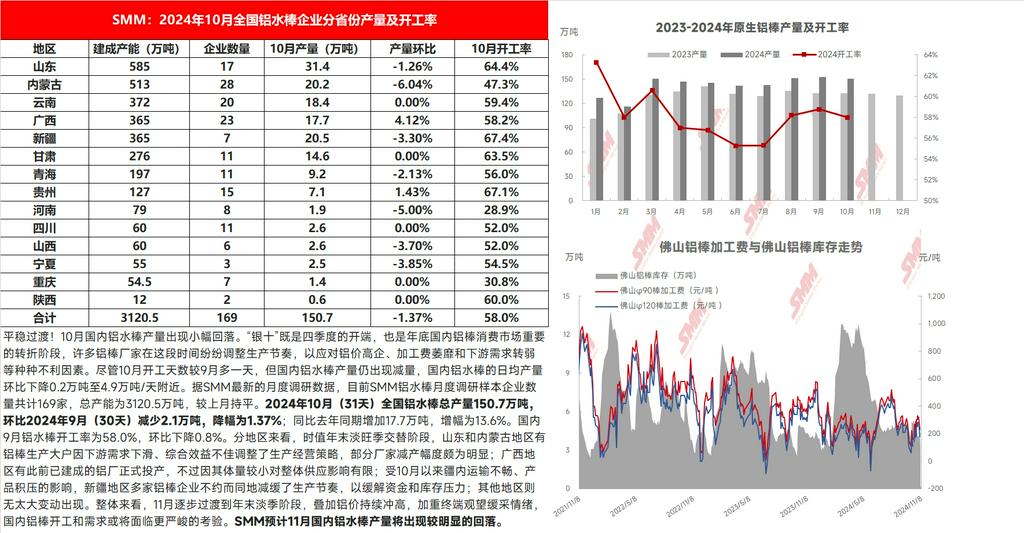 平稳过渡!10月国内铝水棒产量出现小幅回落【SMM分析】