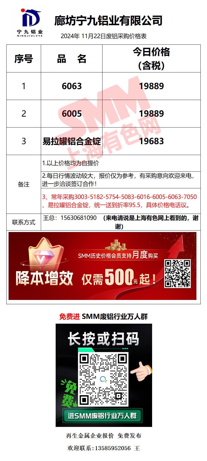 11月22日宁九铝业 废铝采购报价