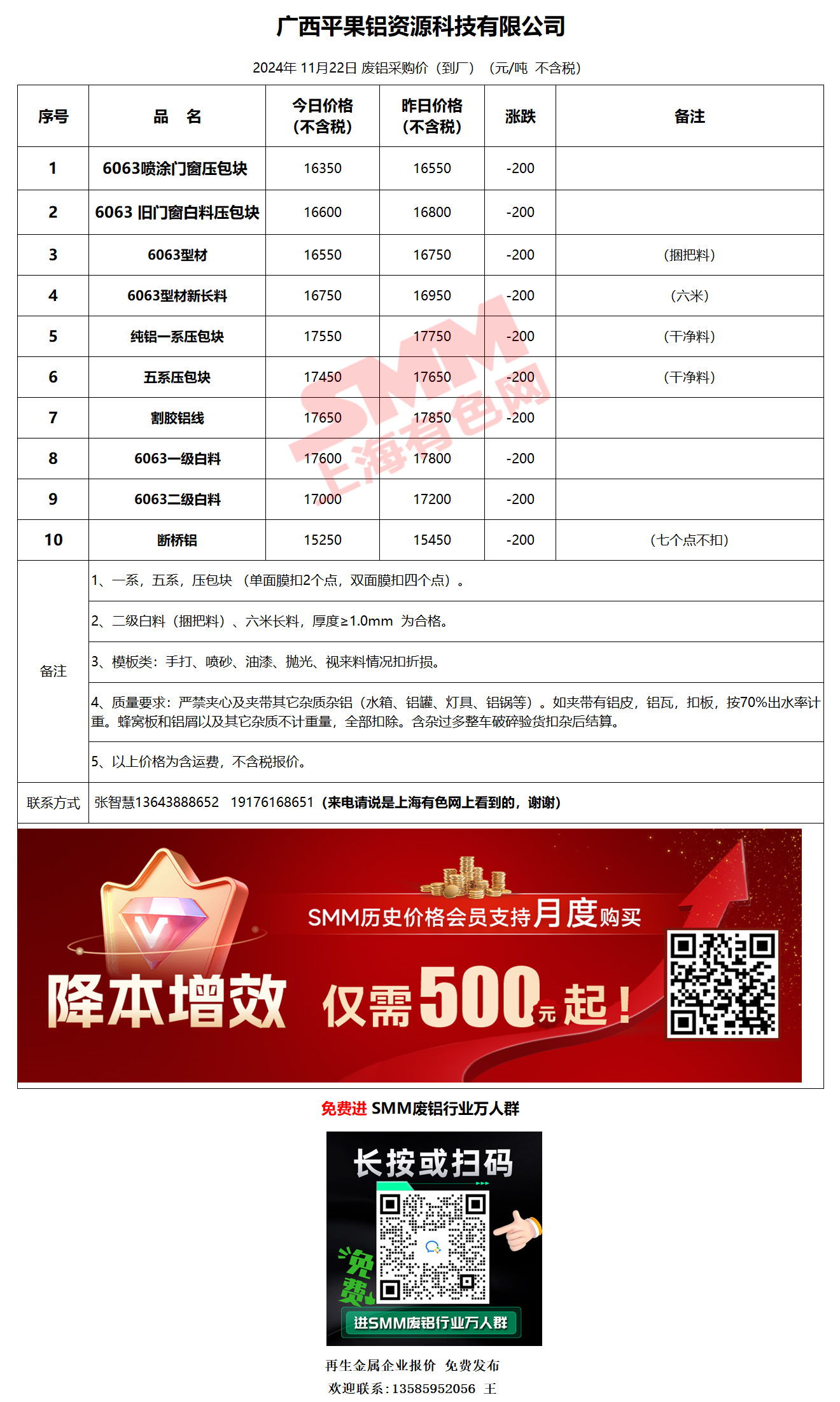 11月22日广西平果 废铝采购报价