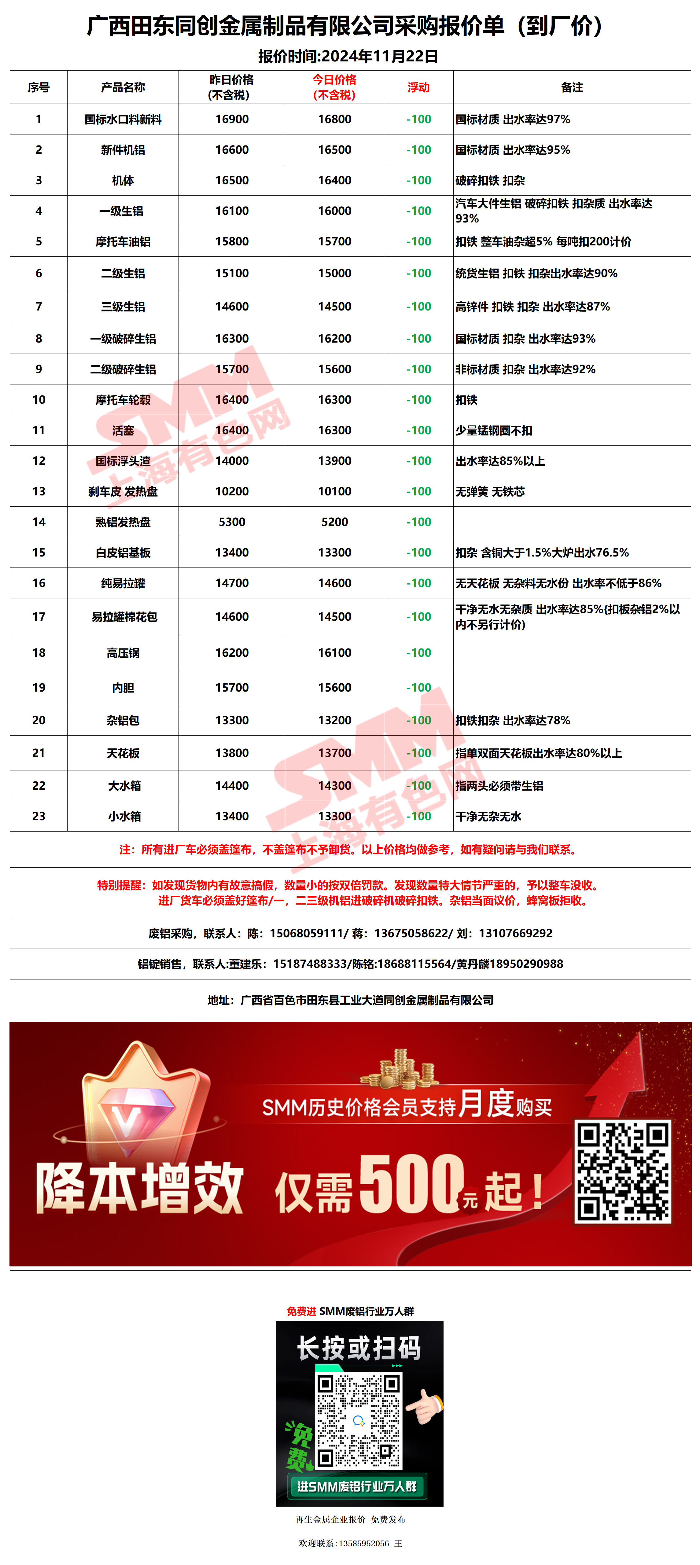 11月22日广西同创 废铝采购报价