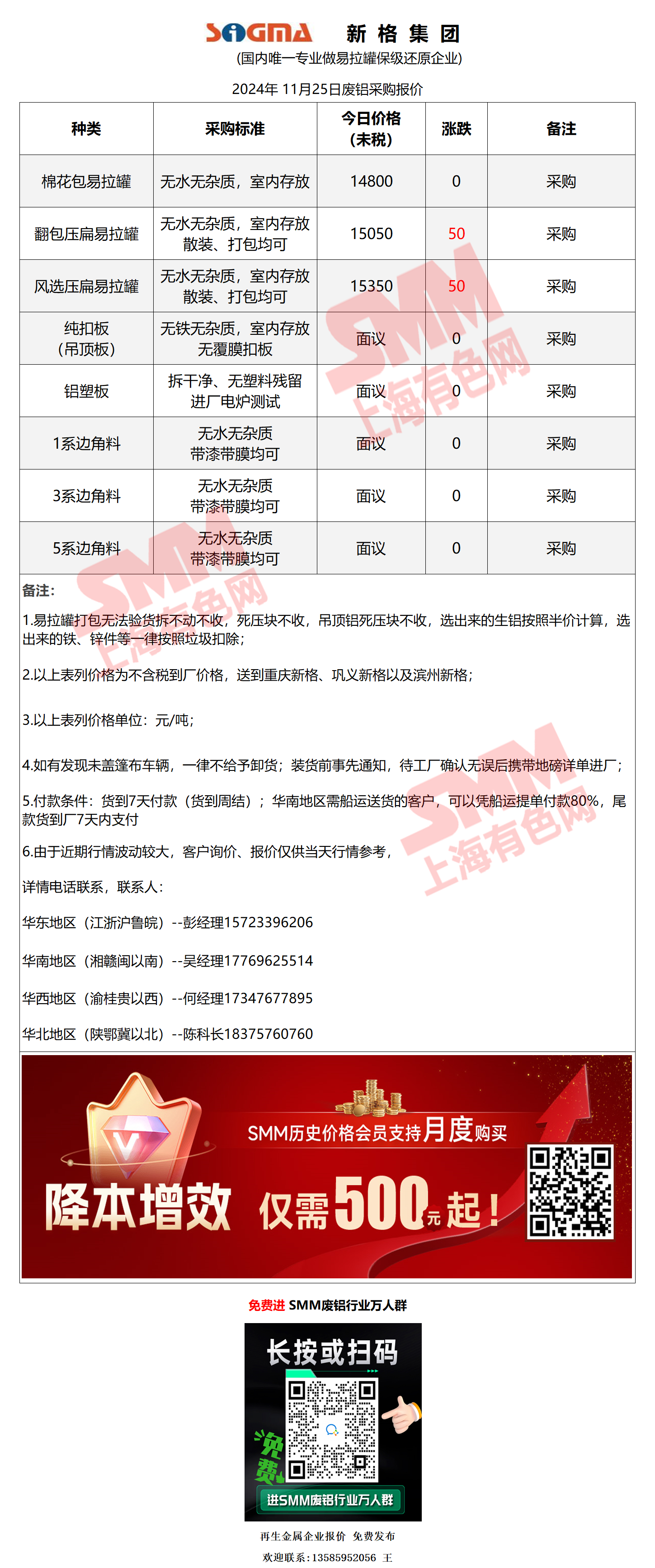 今日新格集团 废铝采购报价已更新,有货的朋友欢迎联系我们!