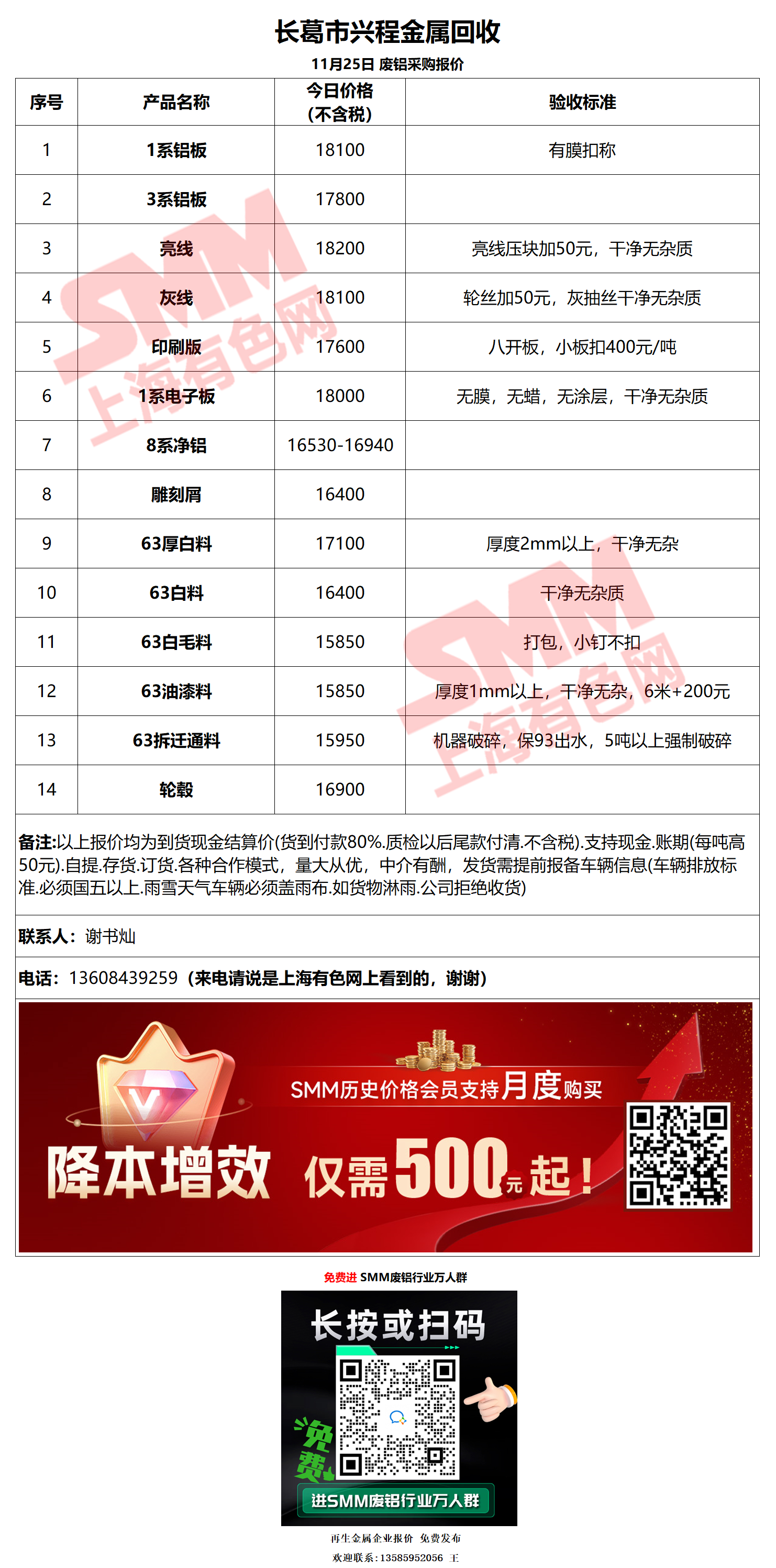 11月25日长葛兴程 废铝采购报价