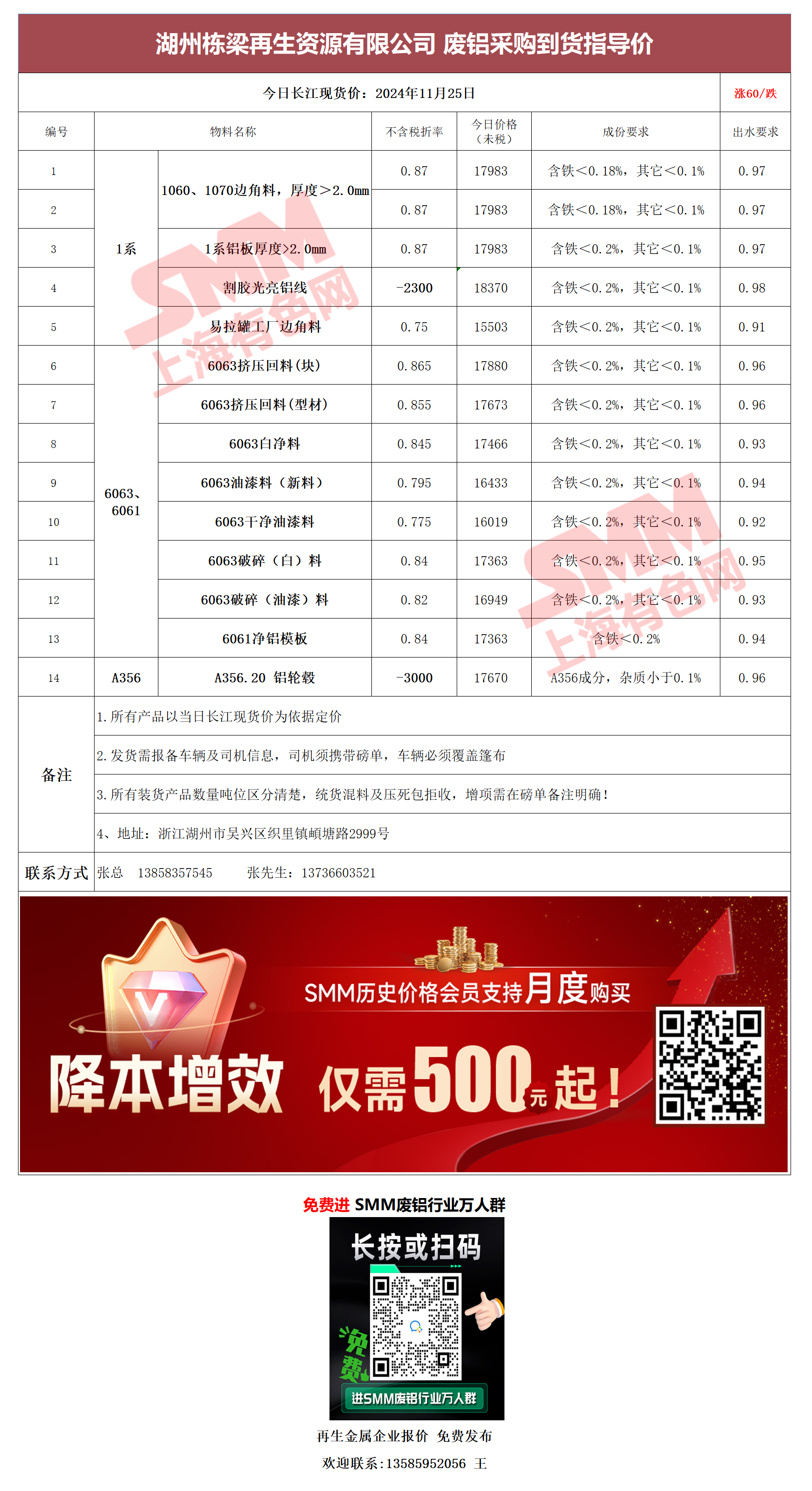 11月25日湖州栋梁再生 废铝采购报价