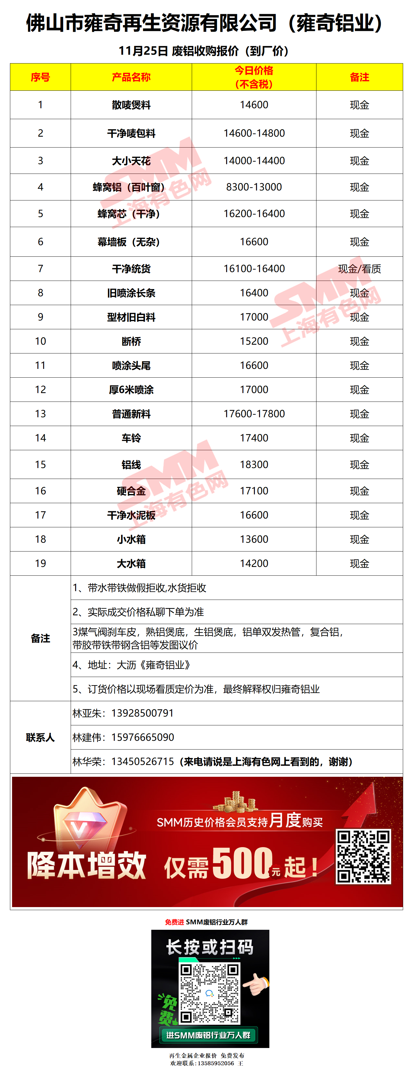 11月25日佛山雍奇 废铝采购报价