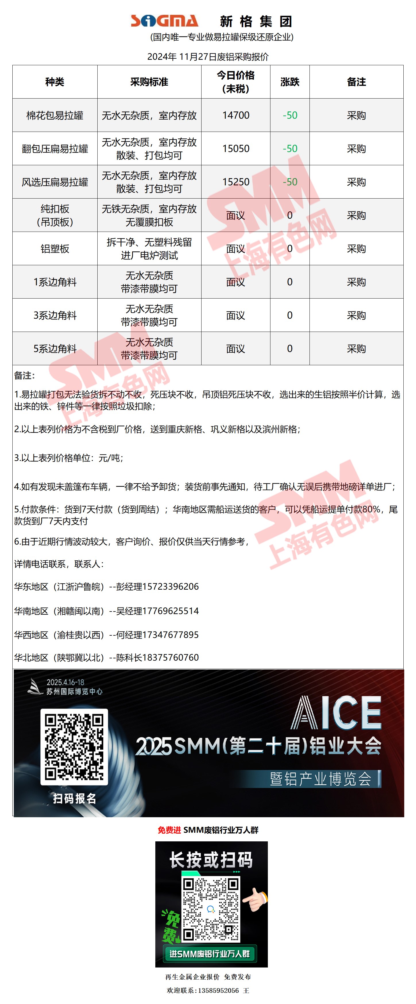 今日新格集团 废铝采购报价已更新,有货的朋友欢迎联系我们!