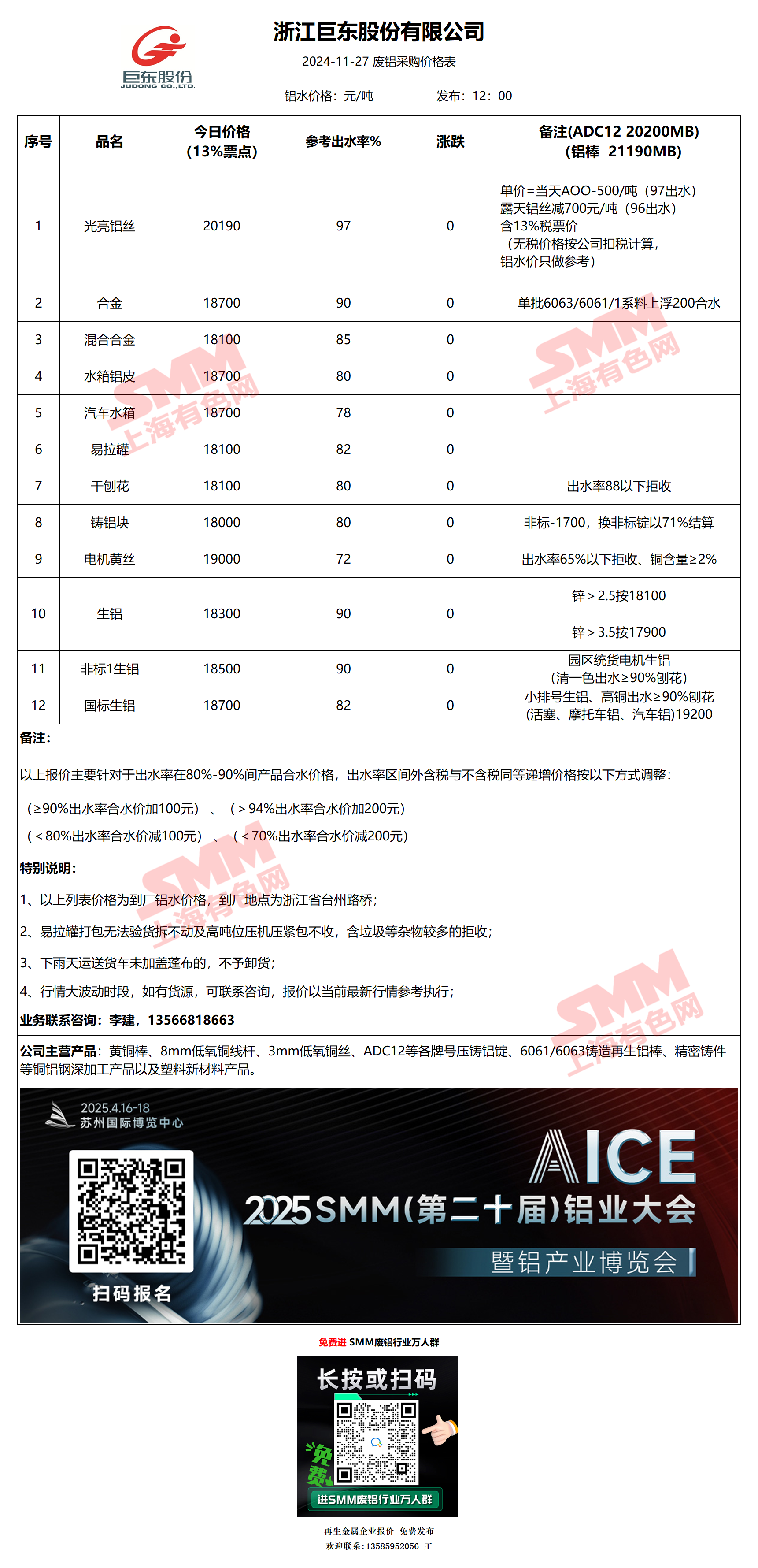 11月27日浙江巨东 废铝采购报价