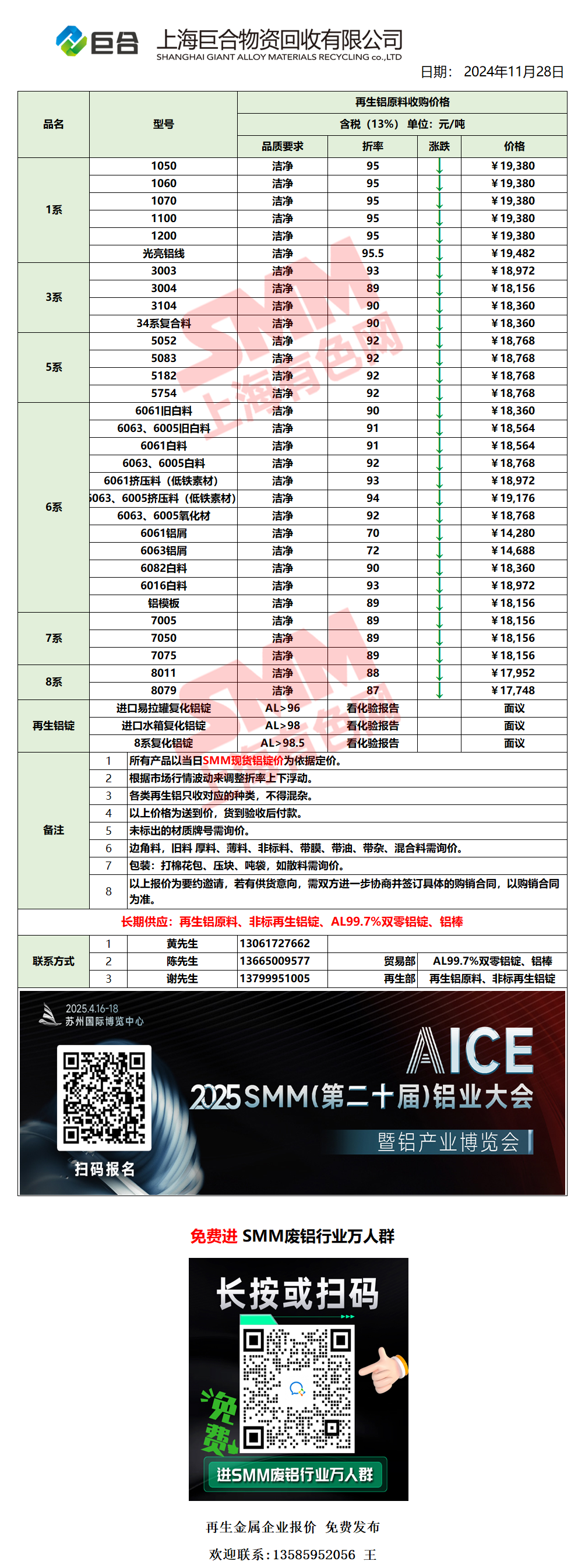 11月28日上海巨合 废铝采购报价