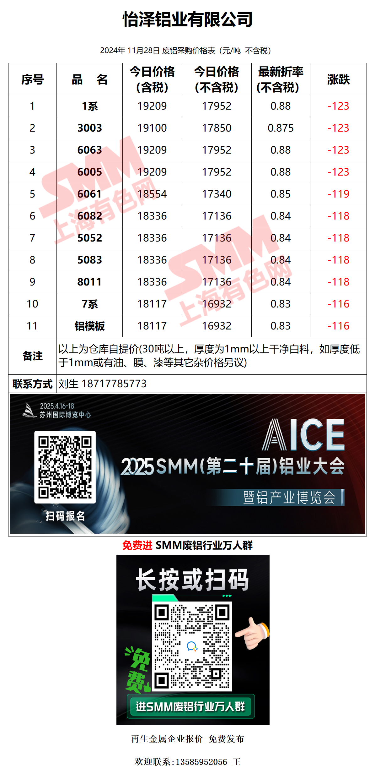 今日怡泽铝业 废铝采购报价已更新,有货的朋友欢迎联系我们!