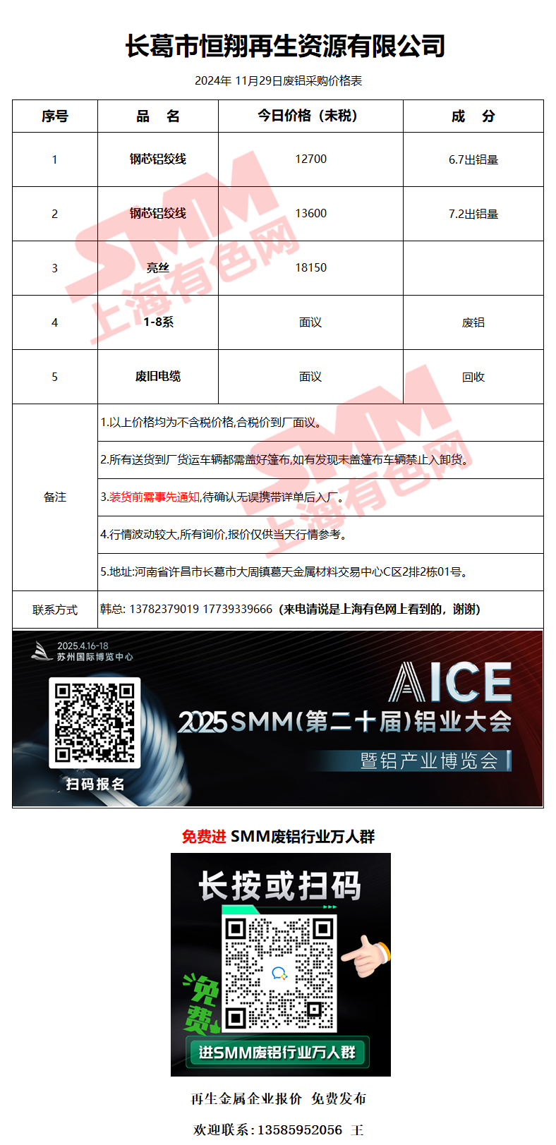 11月29日长葛恒翔 废铝采购报价