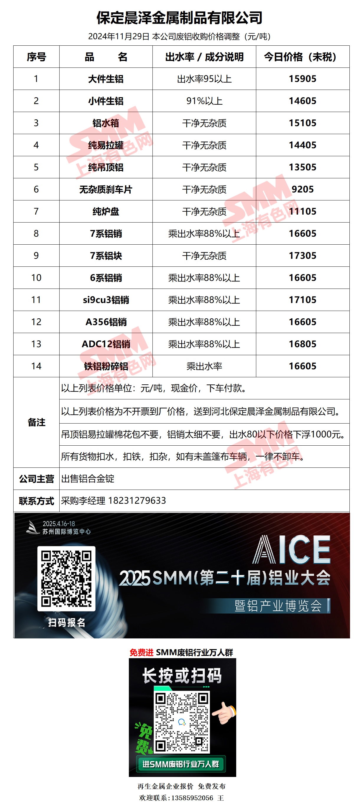 今日保定晨泽 废铝采购报价已更新,有货的朋友欢迎联系我们!