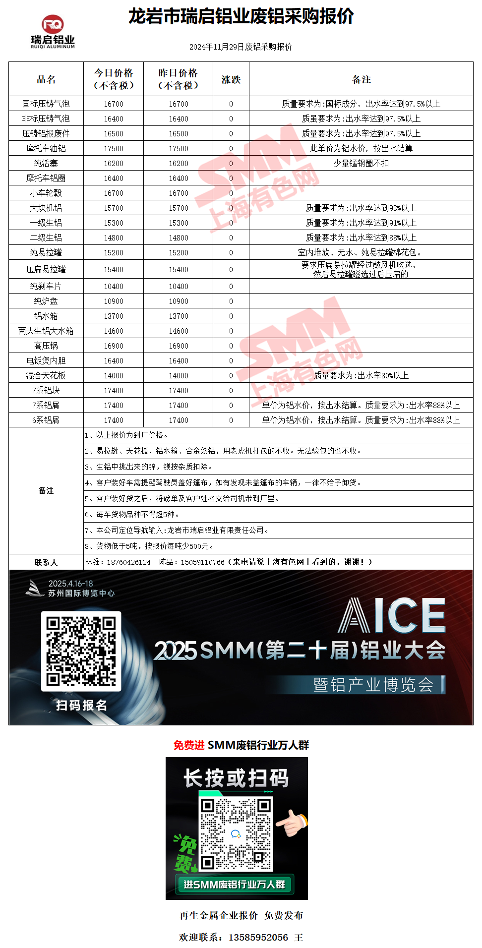 今日龙岩瑞启 废铝采购报价已更新,有货的朋友欢迎联系我们!