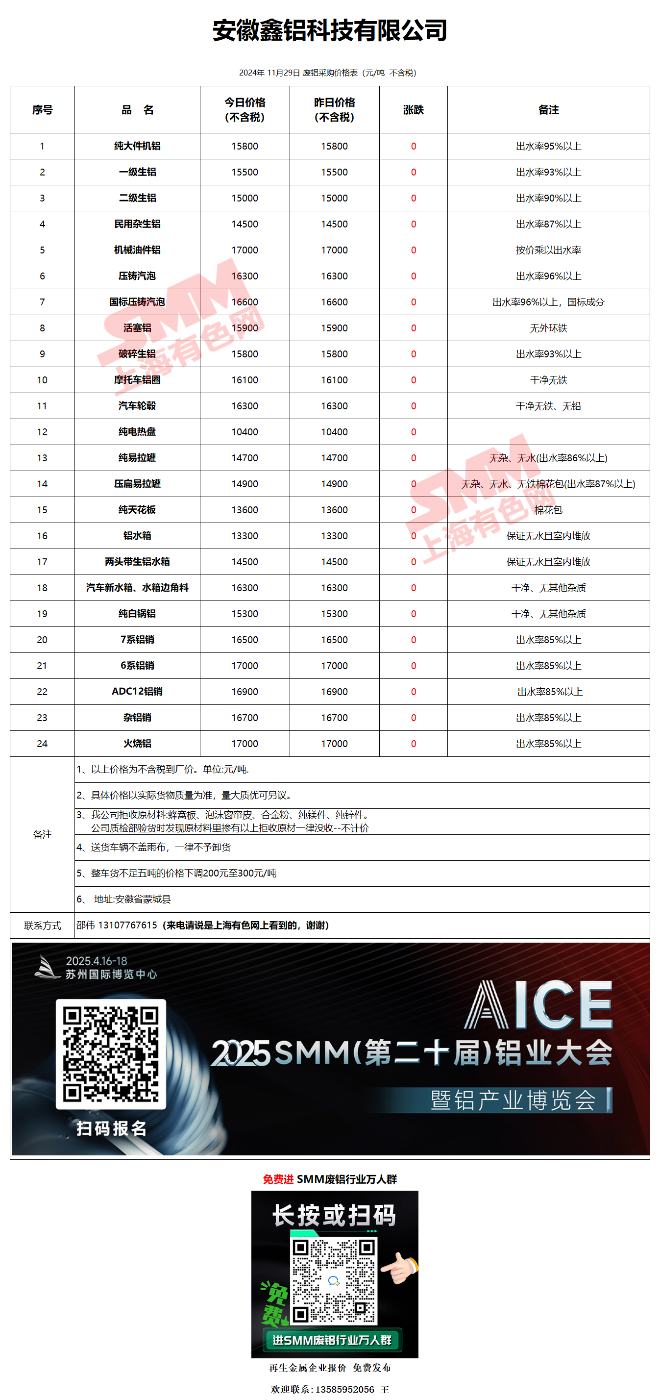 今日安徽鑫铝 废铝采购报价已更新,有货的朋友欢迎联系我们!