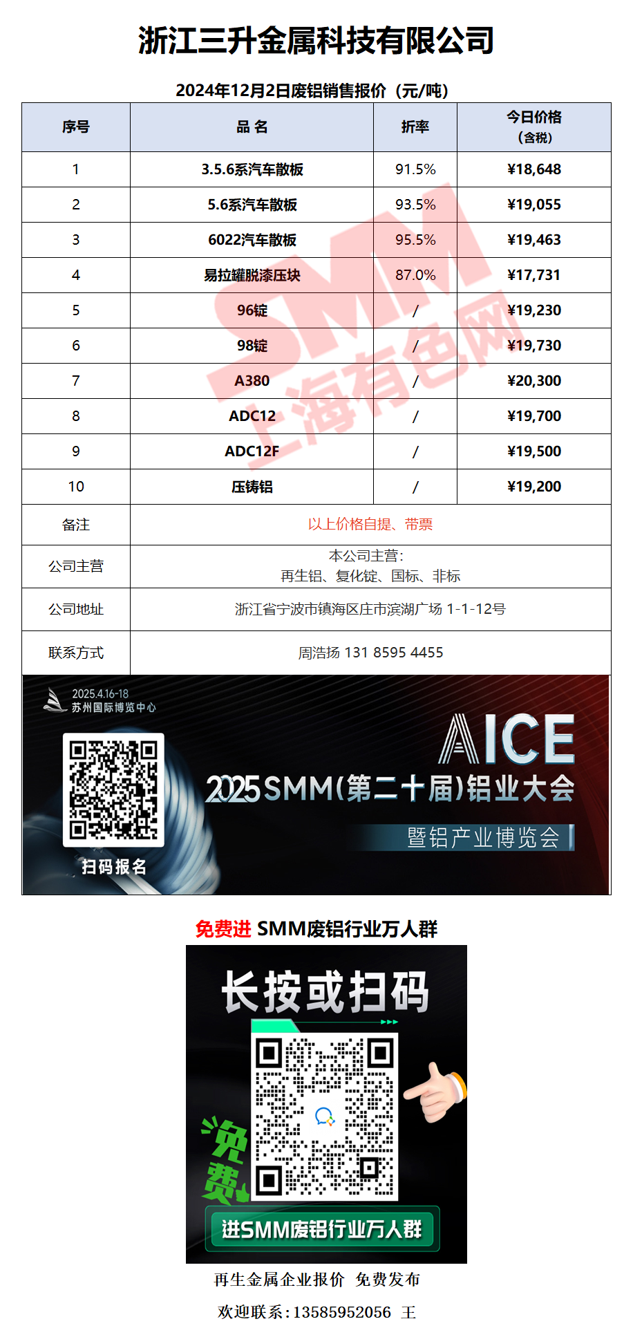 4月3日上海沪闽&福建沪鑫 废铝采购报价