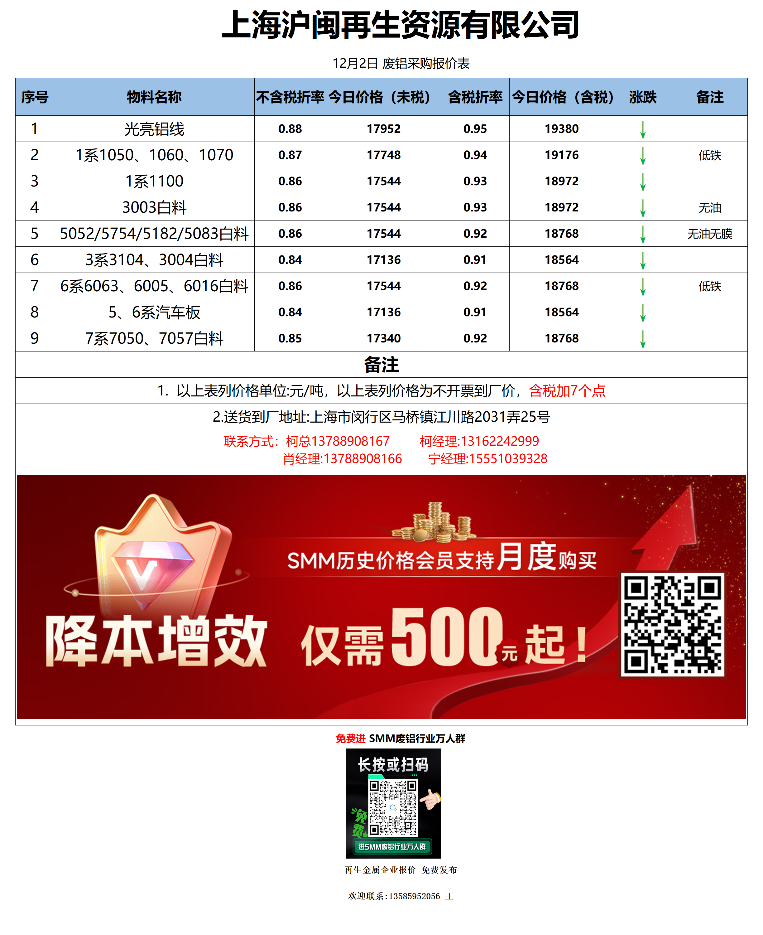 今日上海沪闽 废铝采购报价已更新,有货的朋友欢迎联系我们!