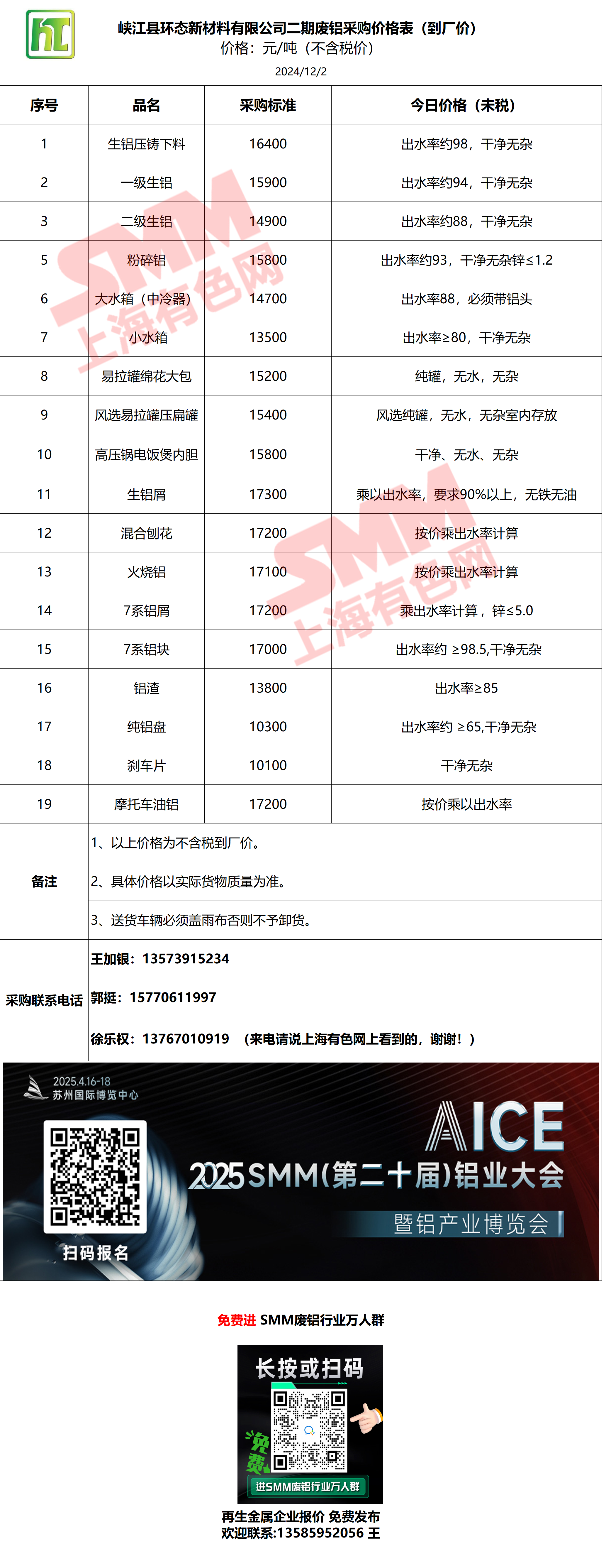 12月2日峡江环态 废铝采购报价