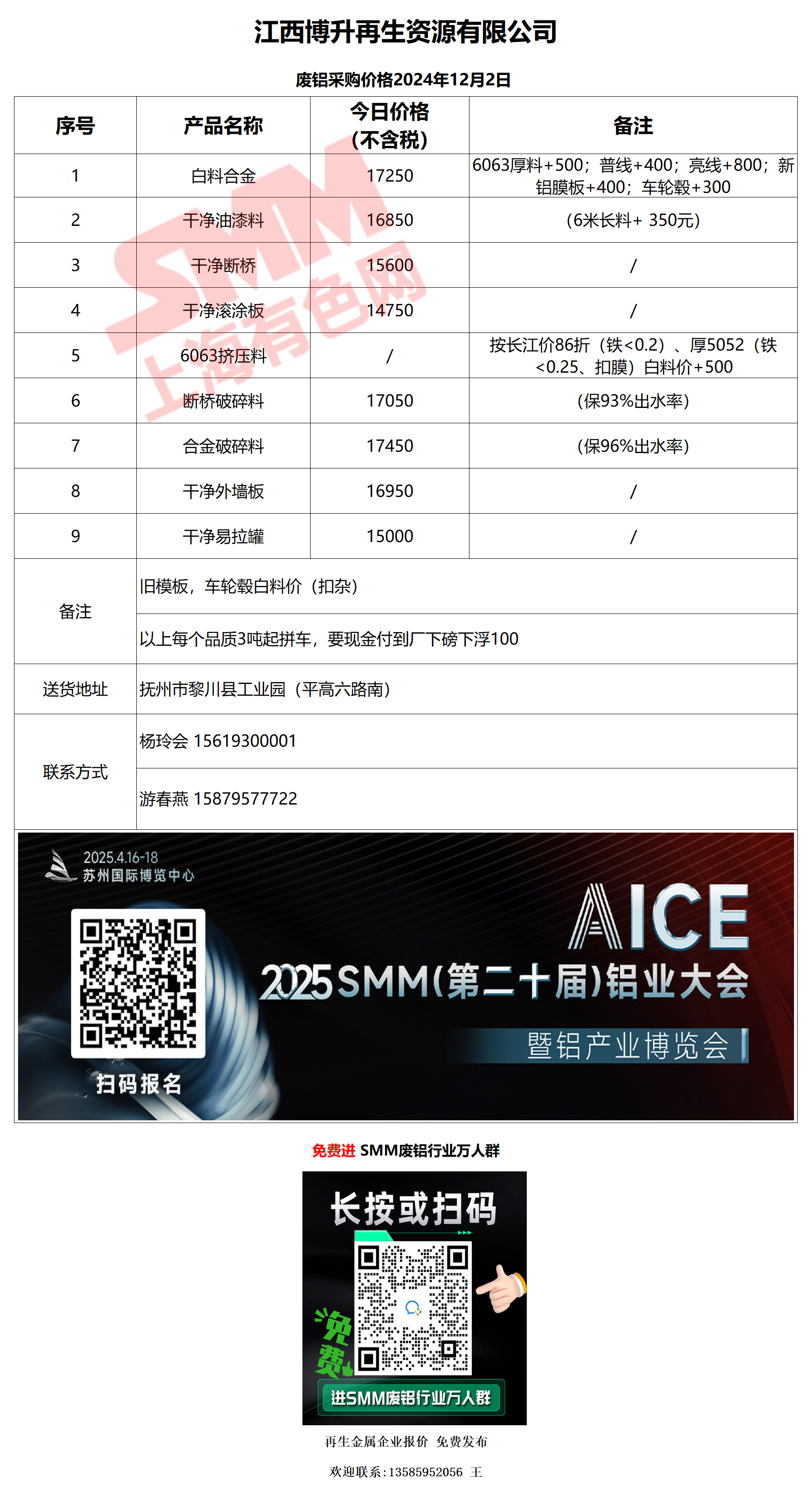 今日江西博升 废铝采购报价已更新,有货的朋友欢迎联系我们!