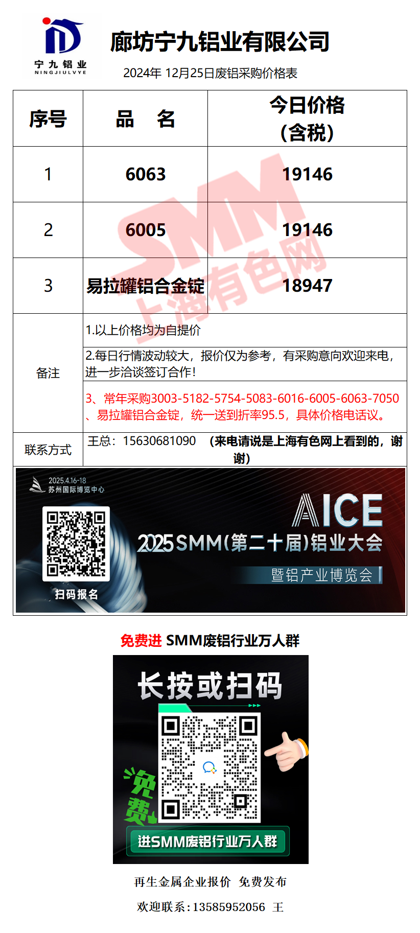 今日宁九铝业 废铝采购报价已更新,有货的朋友欢迎联系我们!
