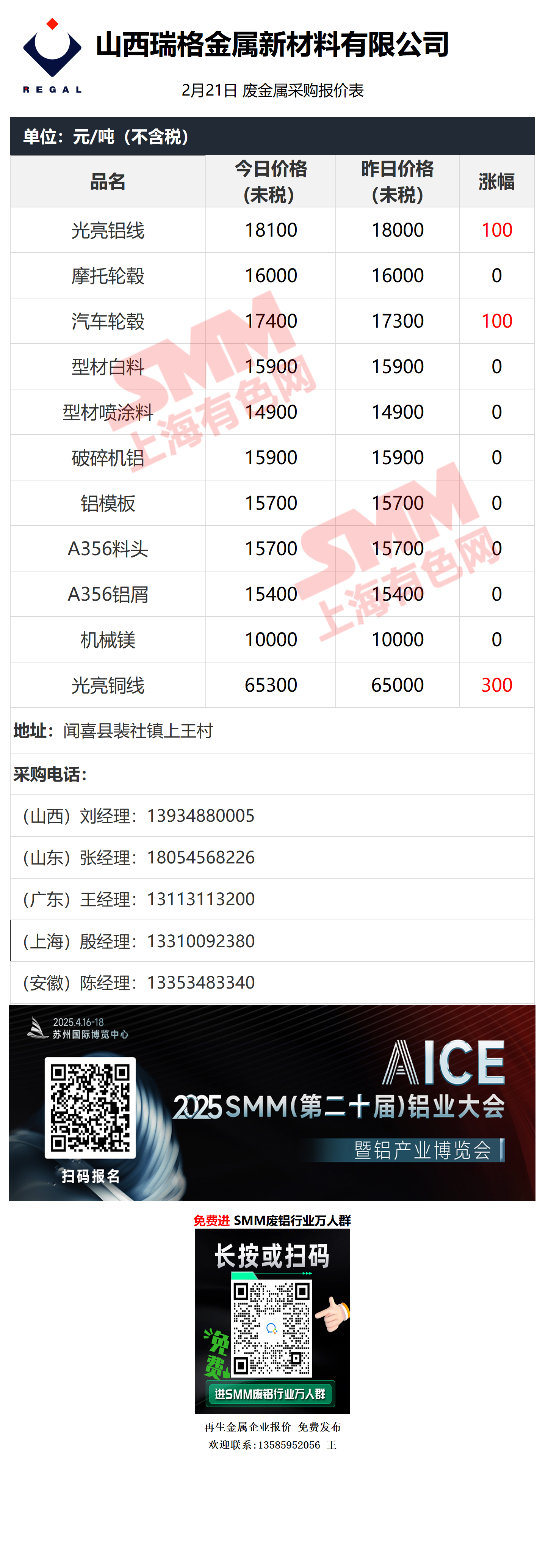 今日瑞格金属 废铝采购报价已更新,有货的朋友欢迎联系我们!