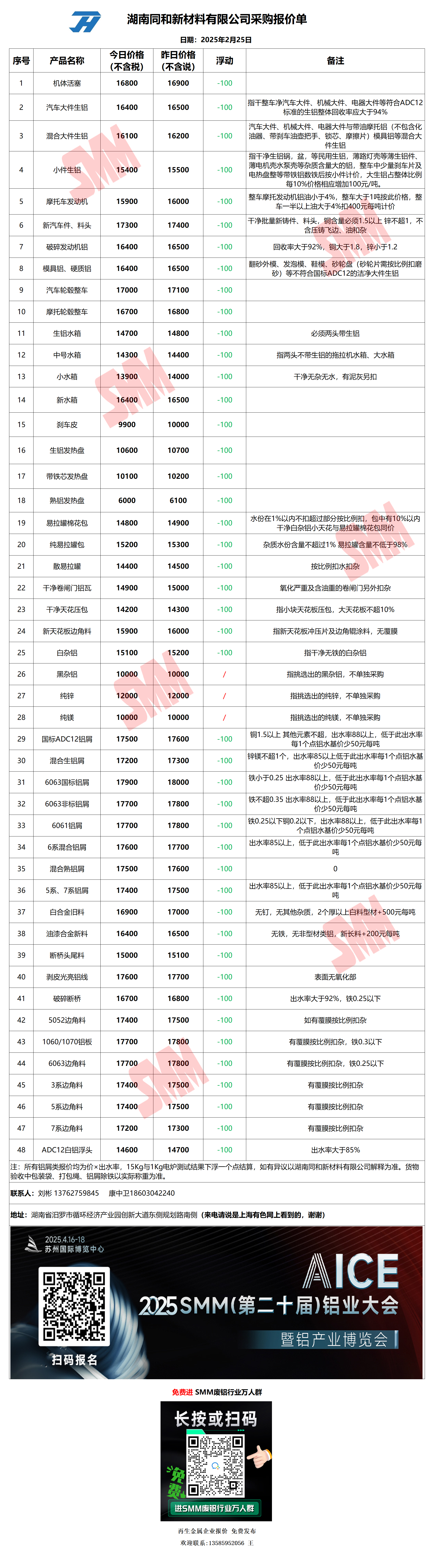 今日湖南同和 废铝采购报价已更新,有货的朋友欢迎联系我们!
