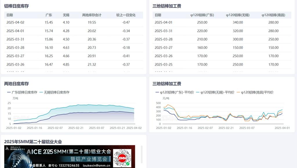 2025年4月2日铝棒库存数据快讯【SMM数据】
